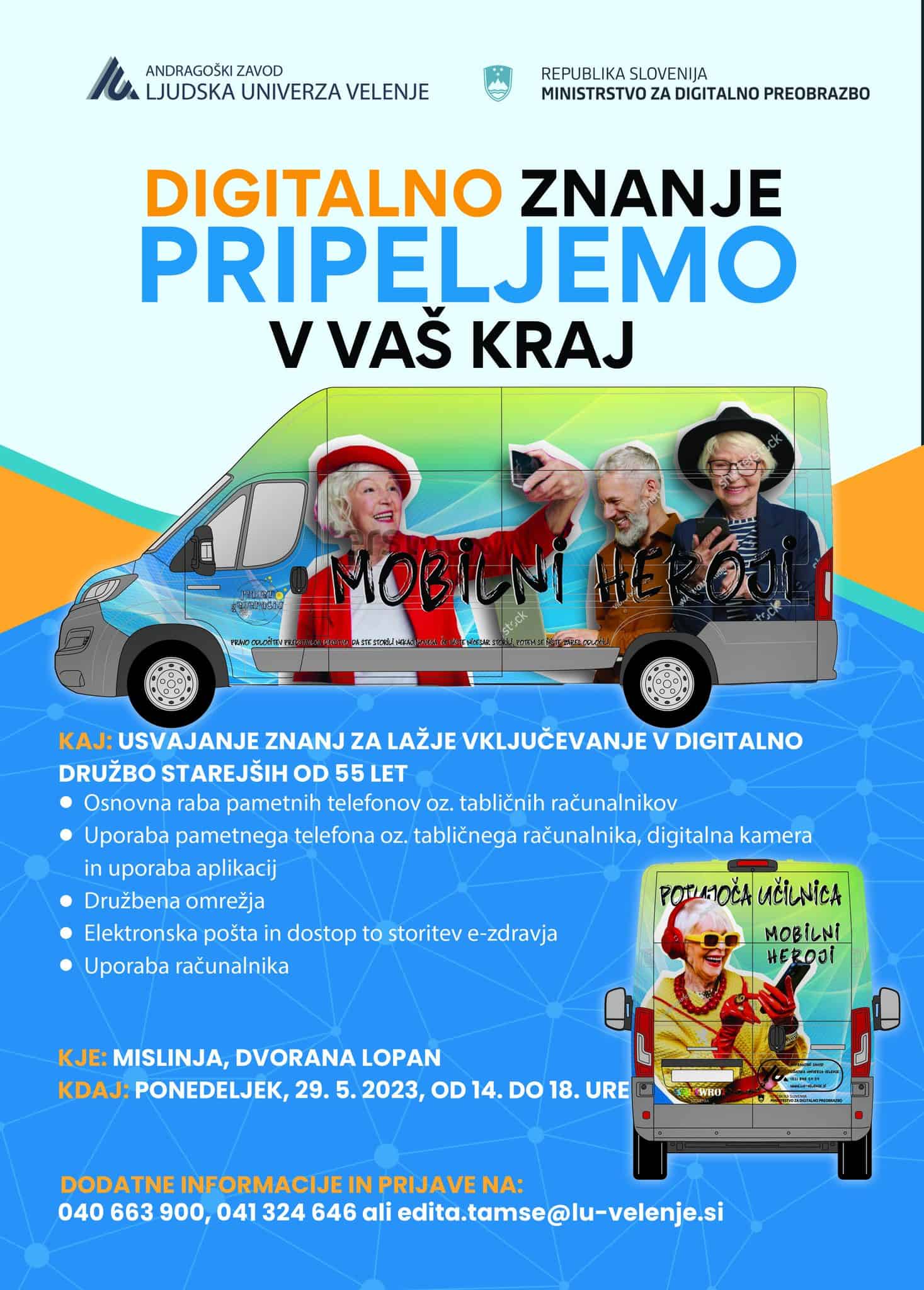 Usposabljanja bodo potekala v vseh slovenskih regijah. Zainteresirani starejši se bodo lahko udeležili štiriurnih usposabljanj na posameznih lokacijah. Udeležencem, ki ne bodo imeli lastne opreme, pa bo v okviru delavnic projekta omogočena uporaba pametnih telefonov ter tabličnih in prenosnih računalnikov.