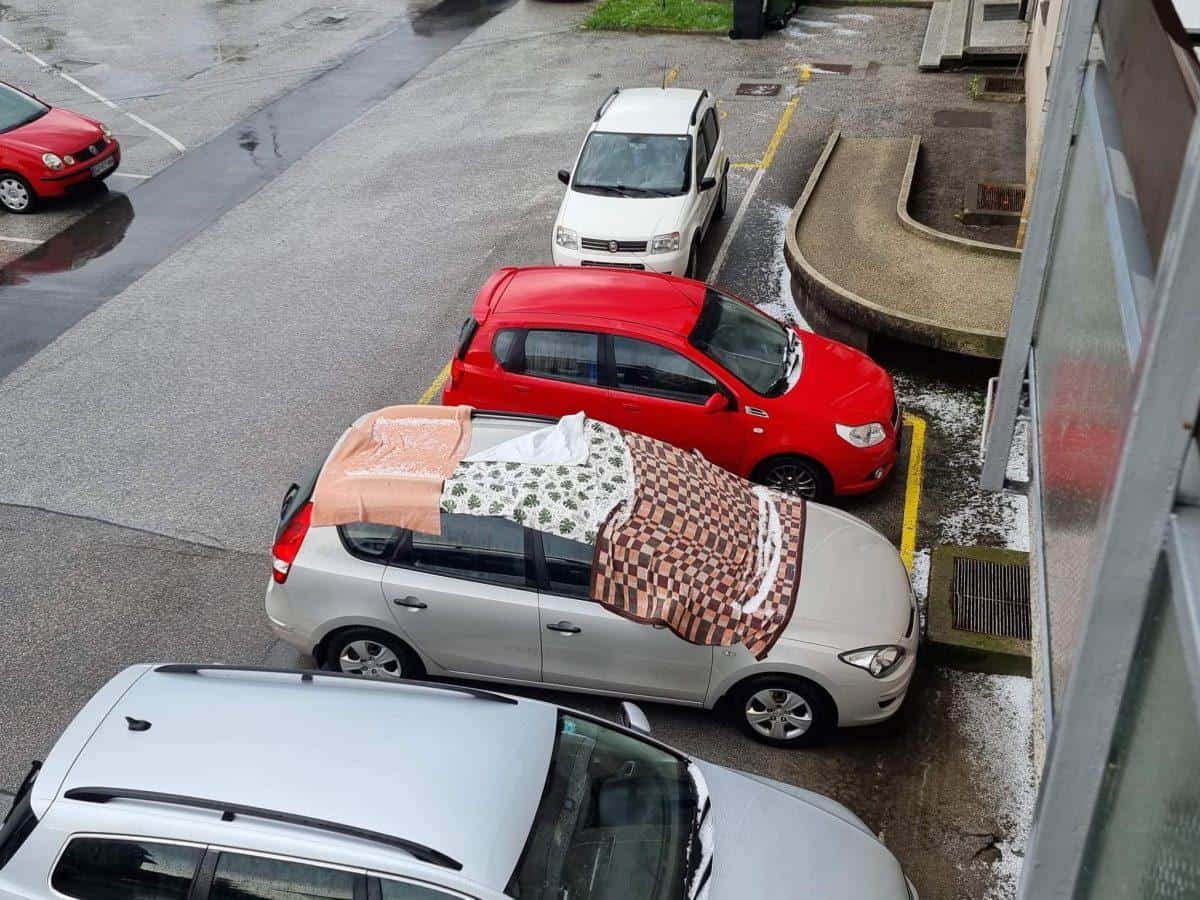 FOTOGALERIJA: Danes po 14. uri je v Mislinji padala toča. FOTO: Žiga Prasnic