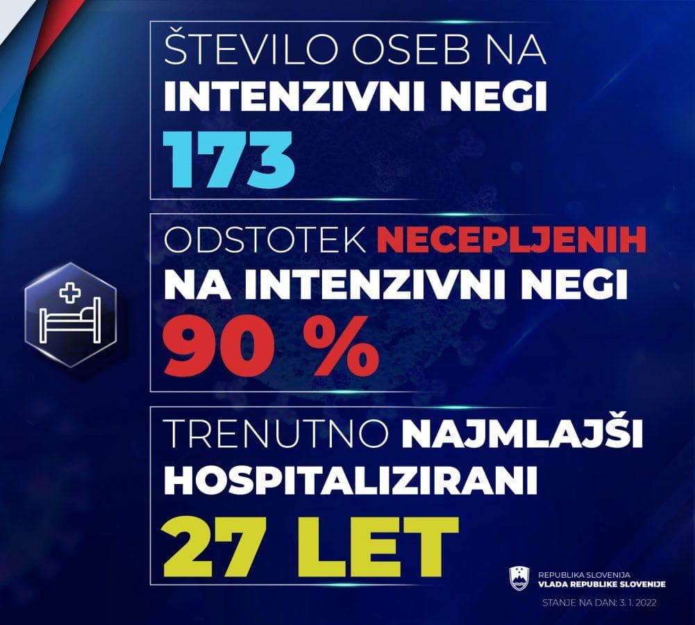 V enotah intenzivne terapije se danes zdravi 173 bolnikov, od tega je 90 % necepljenih.