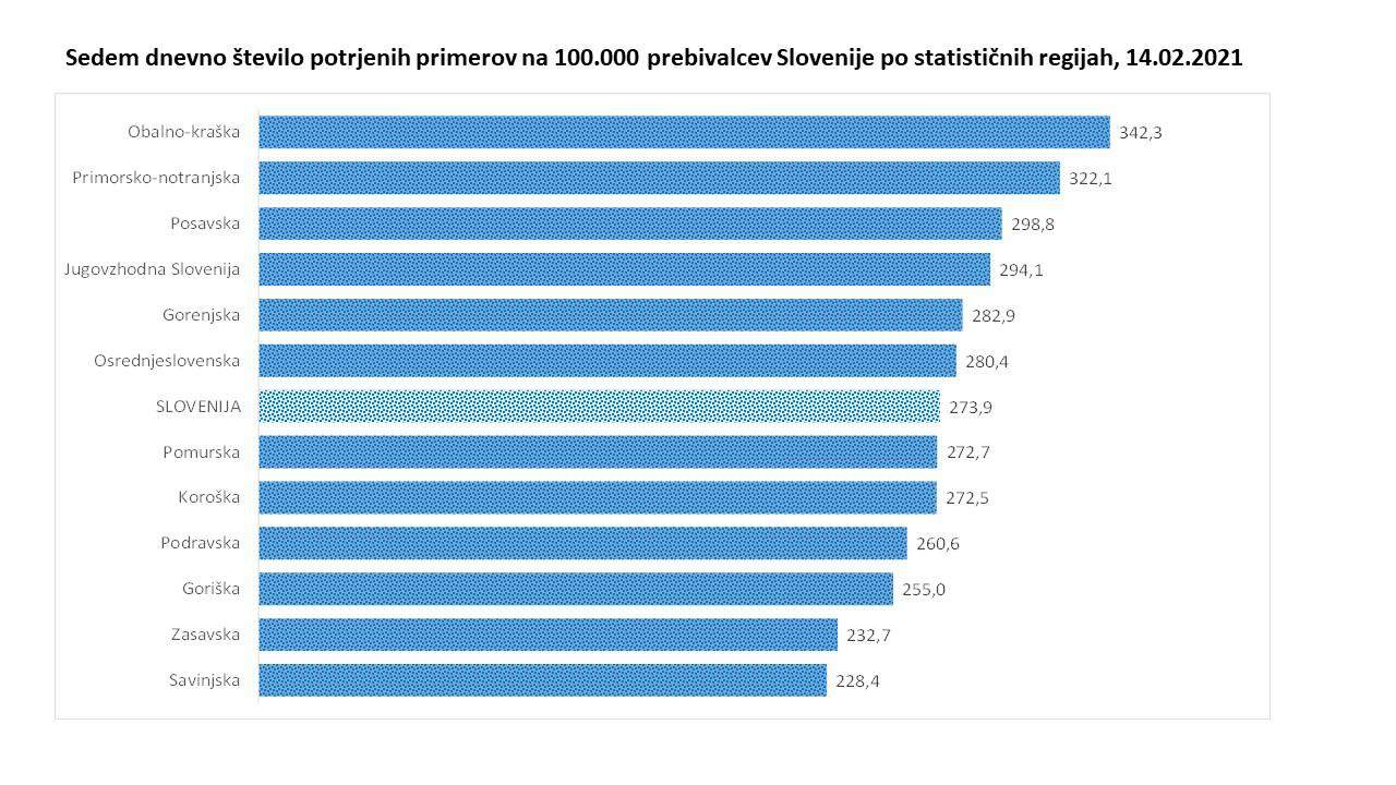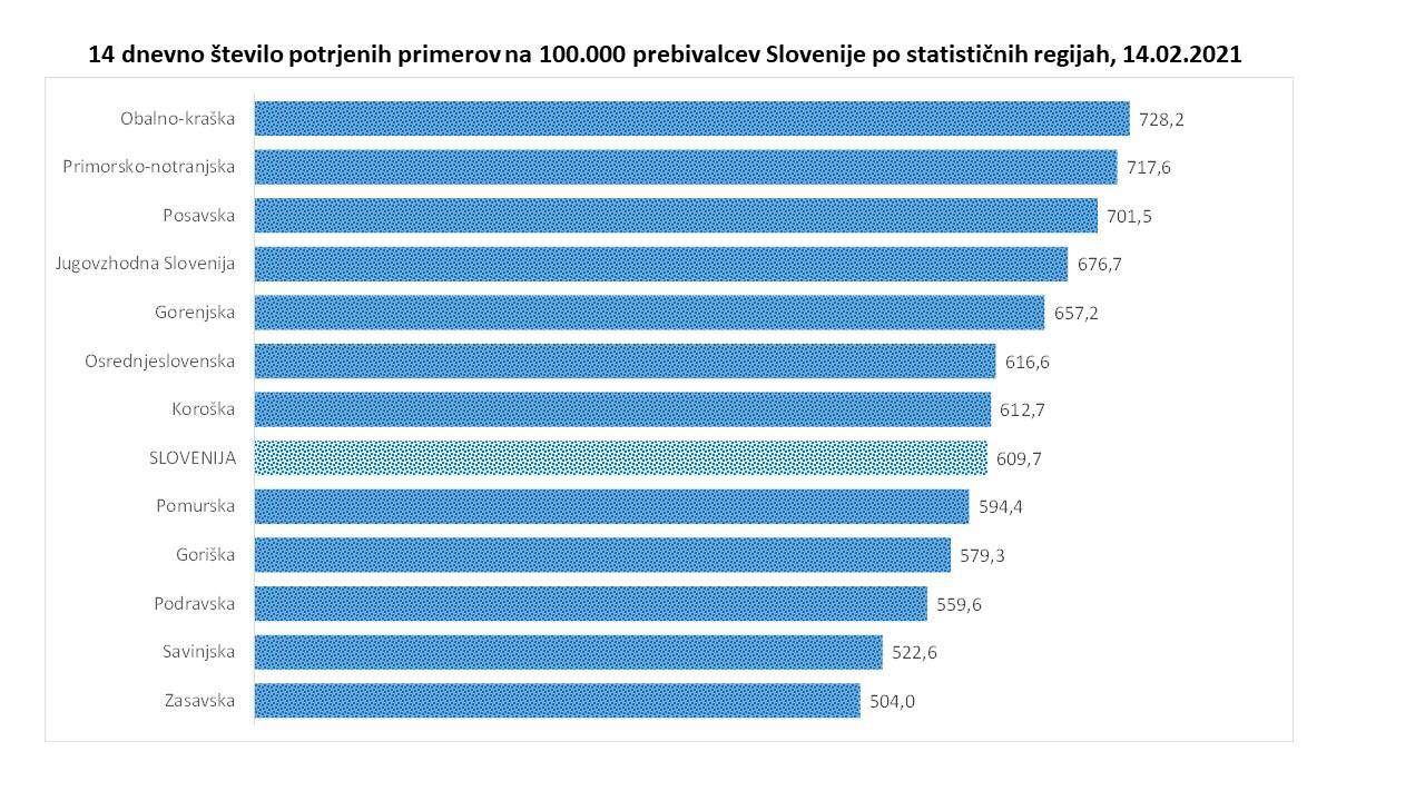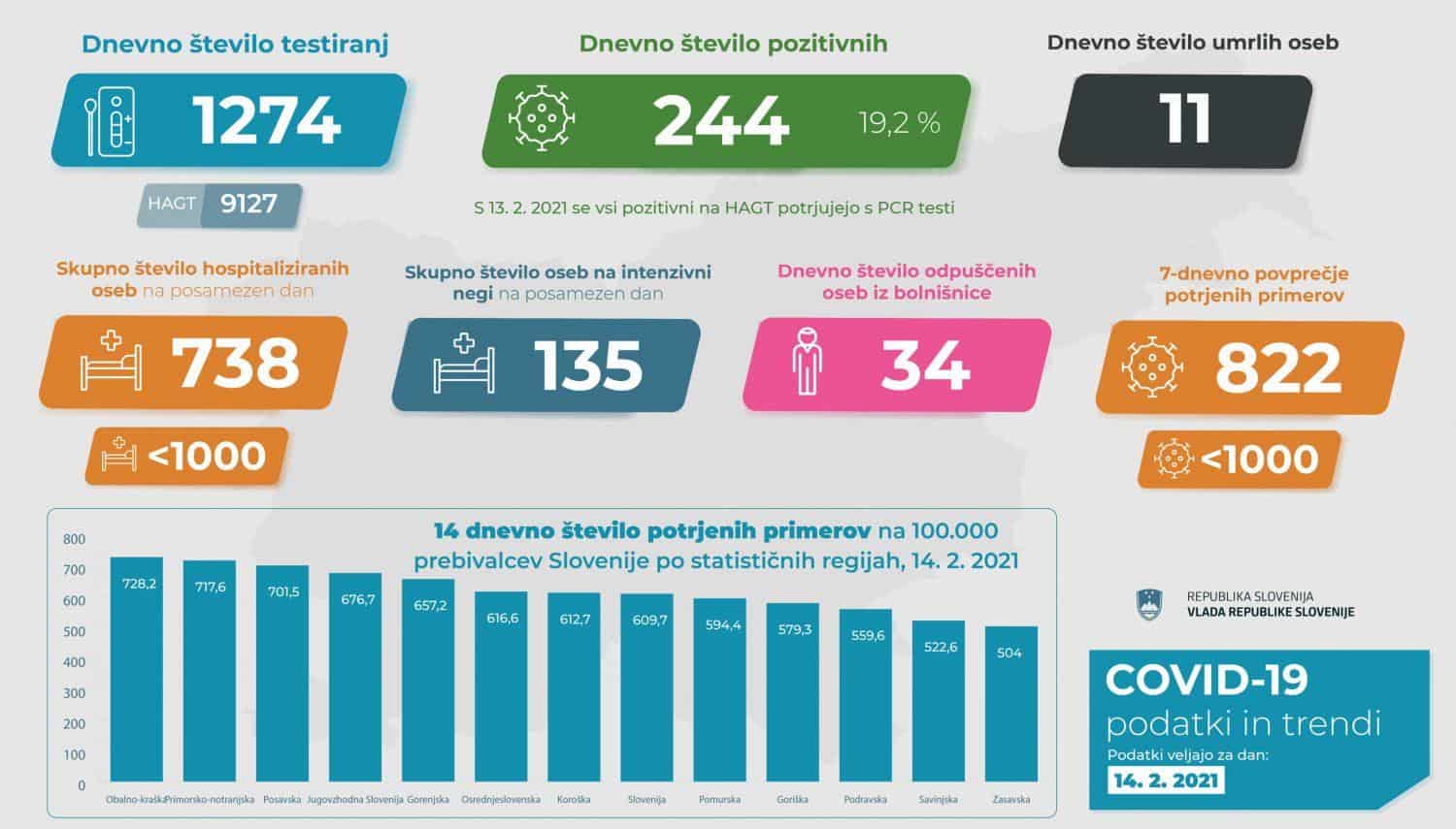 Trend obolelosti s koronavirusom v Sloveniji na dan 14. 2. 2021 (00:00-24:00):