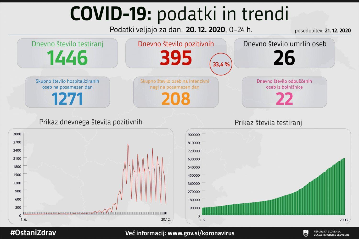 Trend obolelosti s koronavirusom v Sloveniji na dan 20. 12. 2020 (00:00-24:00):