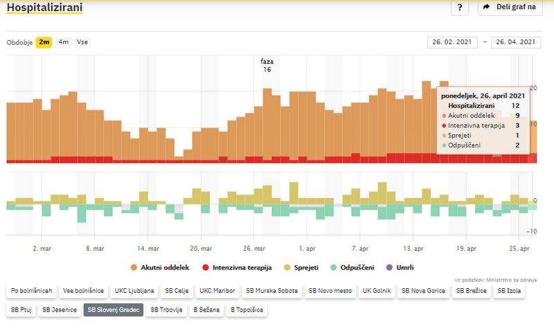 - Dnevno št. odpuščenih iz bolnišnice: 23