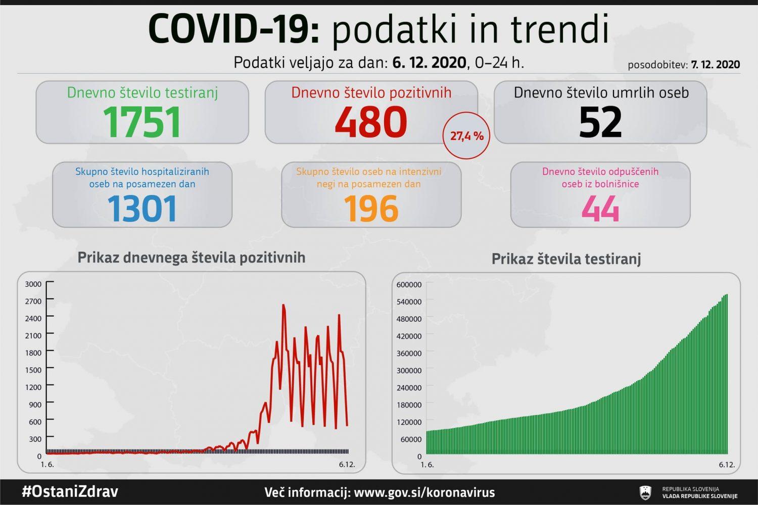 "V soboto je bilo opravljenih 3744 testov. Potrjenih je bilo 1030 novih okužb. Delež pozitivnih testov je znašal 27,4 %. Včeraj je delež pozitivnih testov znašal 27,4 %. Ob le 1751 opravljenih testiranjih je bilo novih okužb 480, kar je še vedno nekaj več kot pred tednom dni," je na novinarski konferenci o aktualnem stanju glede bolezni Covid-19 pojasnil vladni govorec Jelko Kacin.