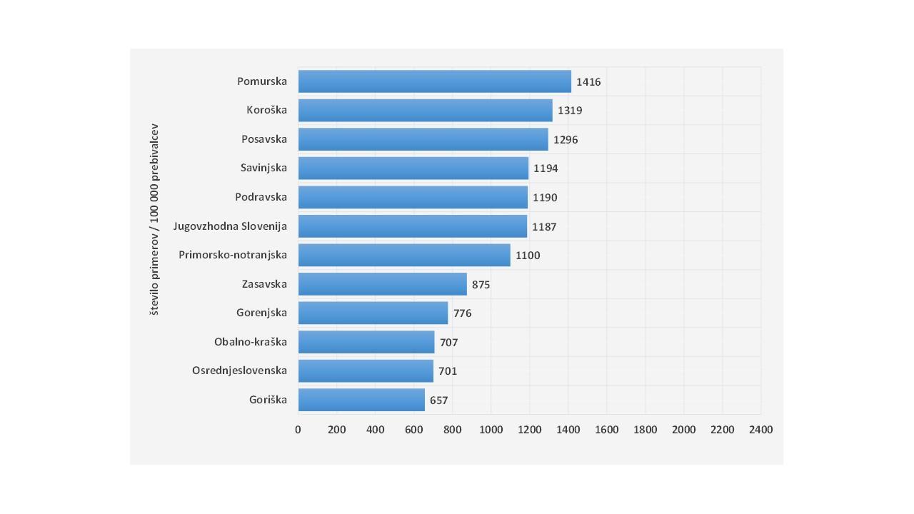 Kar se tiče 14-dnevne incidence na 100.000 prebivalcev slednja po podatkih NIJZ na včerajšnji dan znaša 972. Nižjo incidenco od državnega povprečja ima trenutno 5 regij.