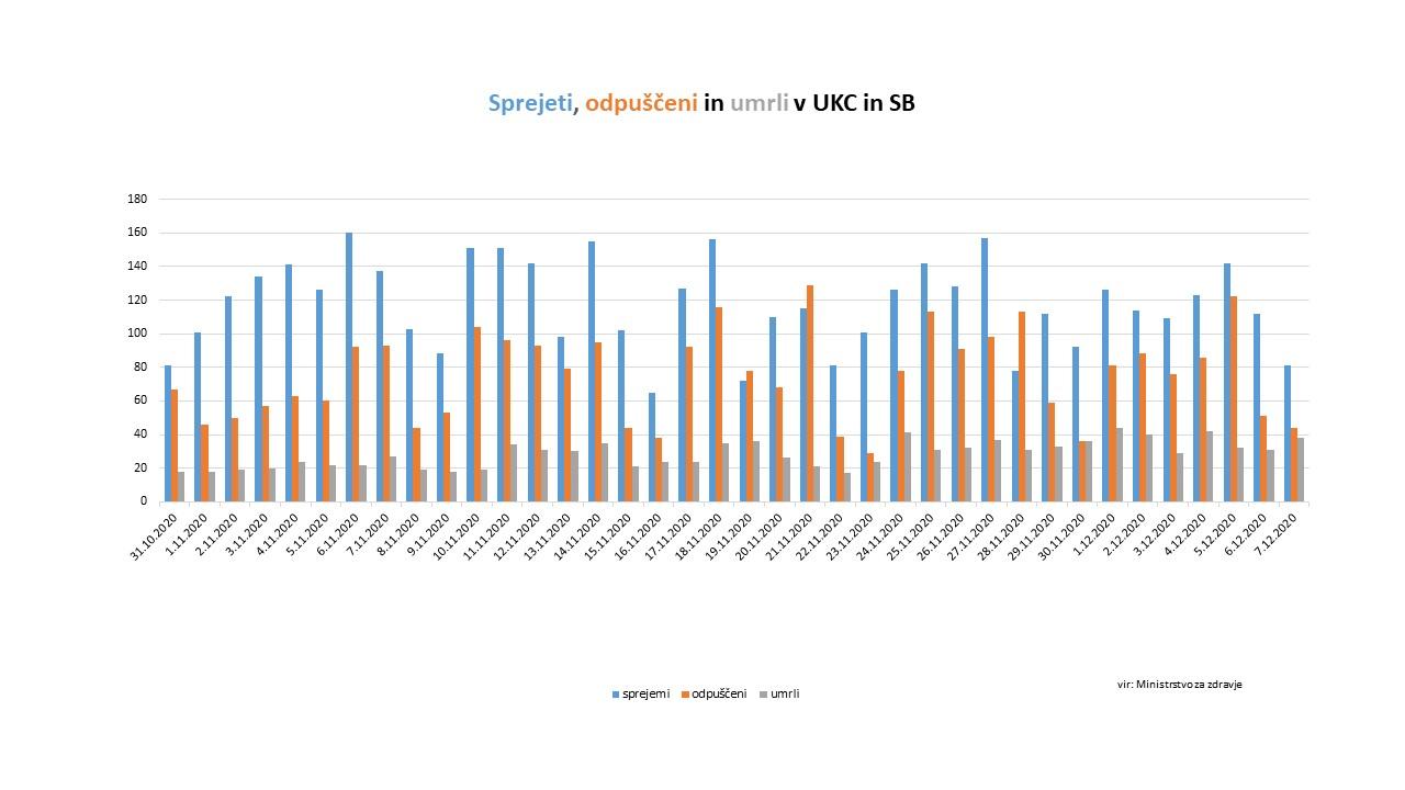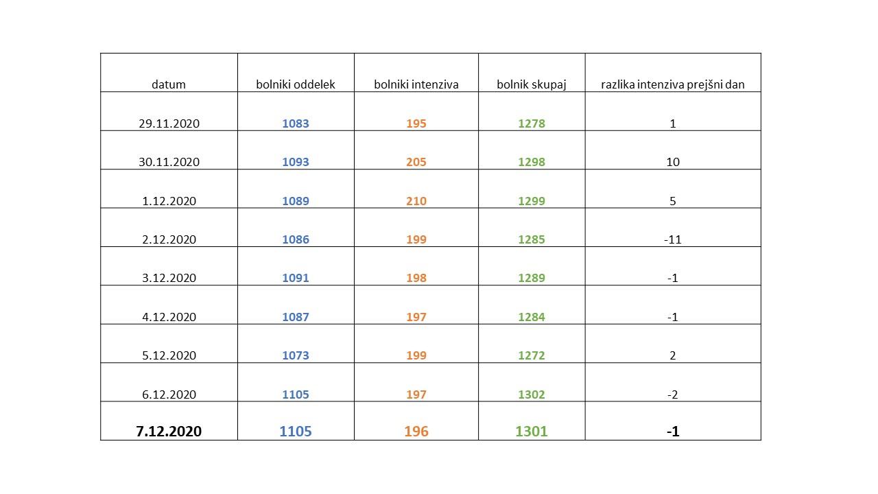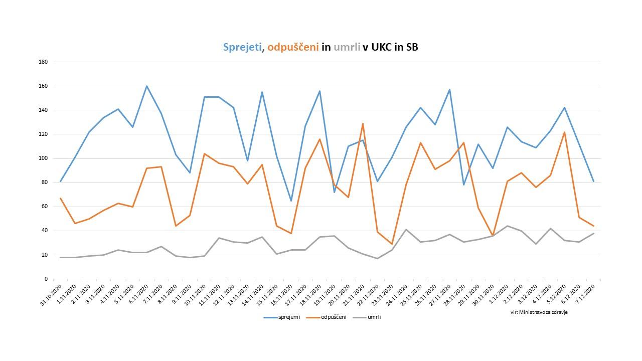 Včeraj je bilo v bolnišnice sprejetih 81 pacientov, dan pred tem 112. Iz bolnišnic je bilo skupaj odpuščenih 44 covid pacientov. Skupaj je bilo čez vikend odpustov 95. Skupaj je sicer bolnišnično oskrbo potreboval 1301 pacient. Intenzivno nego je včeraj potrebovalo 196 pacientov, je še pojasnil Kacin.