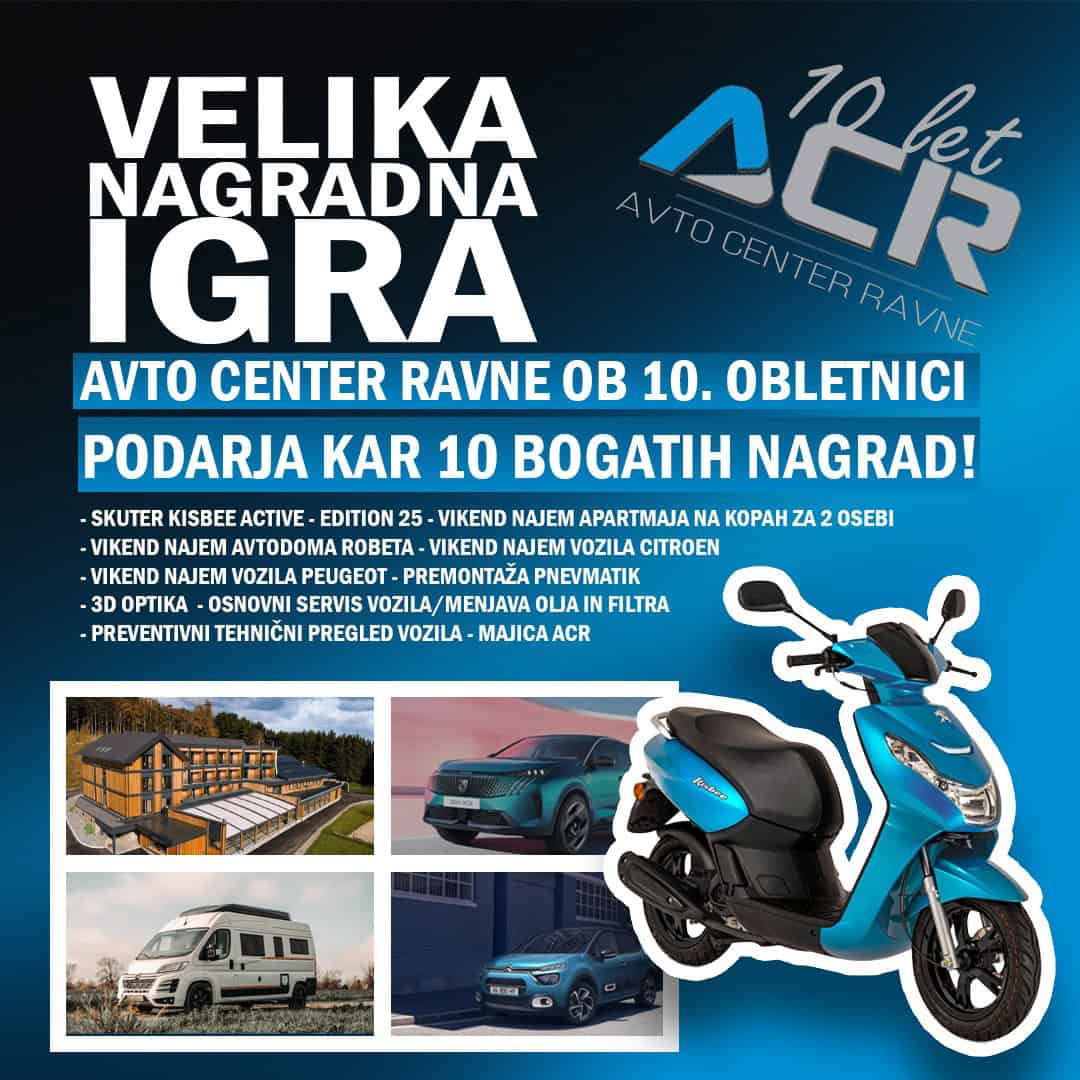 Nagrade bodo desetim izžrebanim srečnežem podelili na velikem praznovanju desete obletnice Avto Centra Ravne v četrtek, 12. septembra 2024.