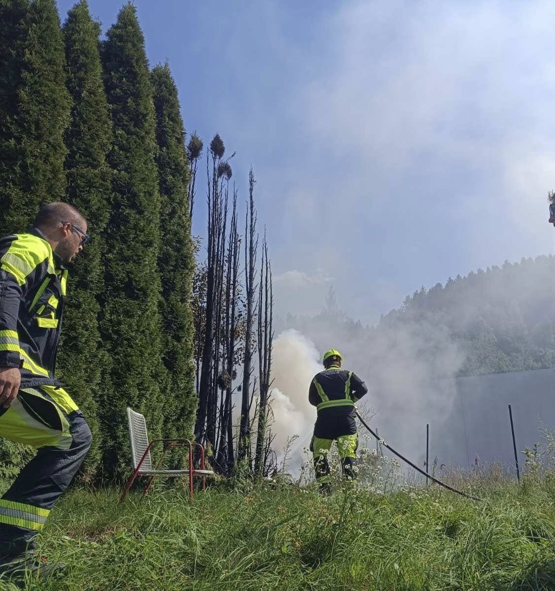Gasilci so požar uspešno omejili in pogasili, s čimer so preprečili širjenje ognja na bližnjo hišo in okolico.