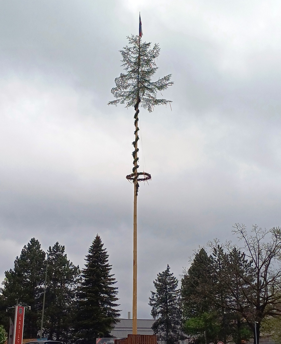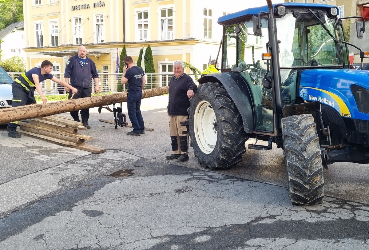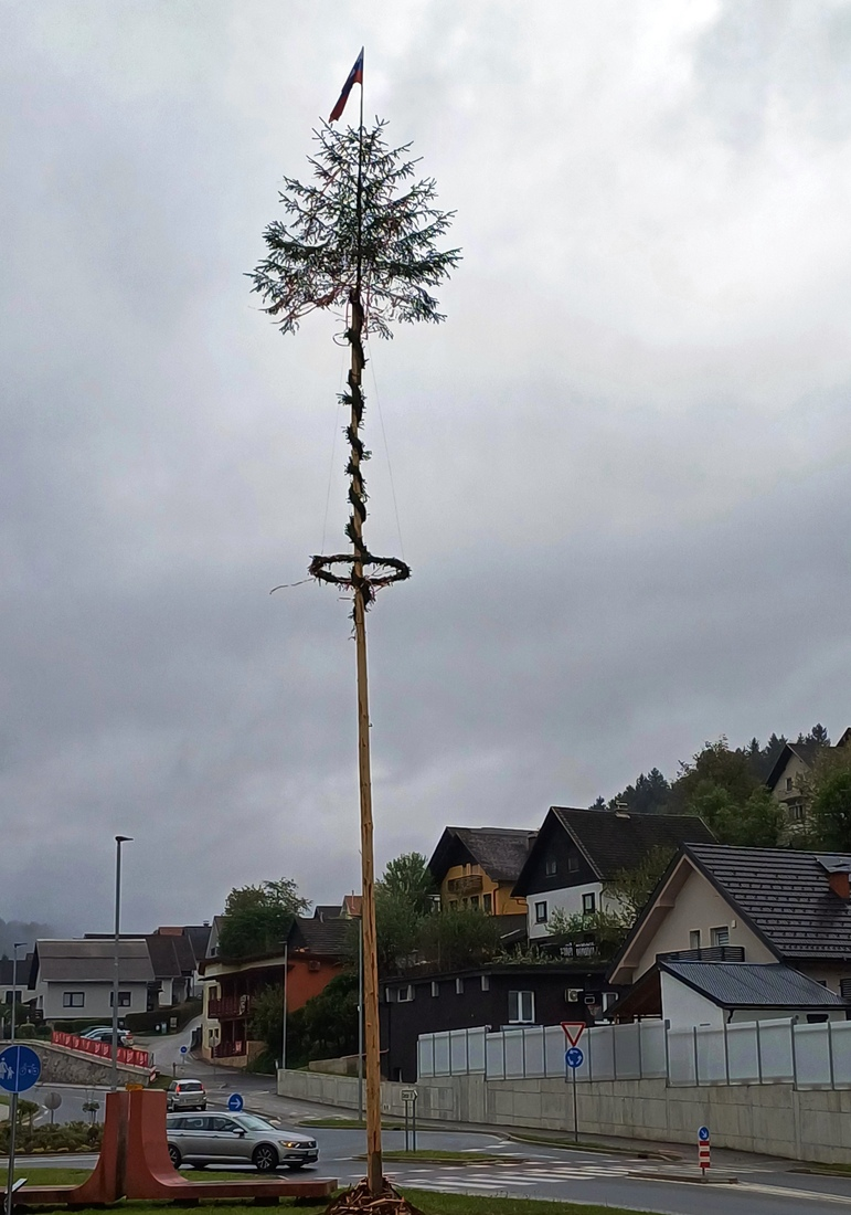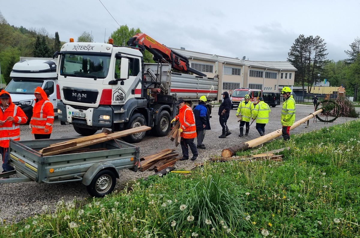 Na Ravnah so približno 35 metrov visok mlaj postavili člani Prostovoljnega gasilskega društva (PGD) Ravne na Koroškem.