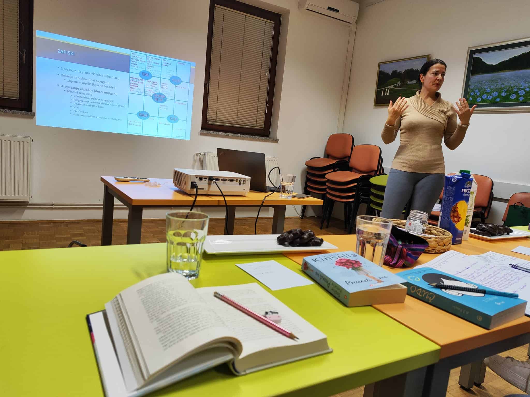 Sprehodili so se skozi osnove pametnega branja, spoznali nekaj tehnik, ki lahko pomagajo pri izboljšanju hitrosti branja in razumevanju prebranega, se preizkusili v hitrosti branja in se ob tem tudi nadvse zabavali. Petkov večer so tako preživeli v dobri družbi in ob pridobivanju koristnih novih znanj.