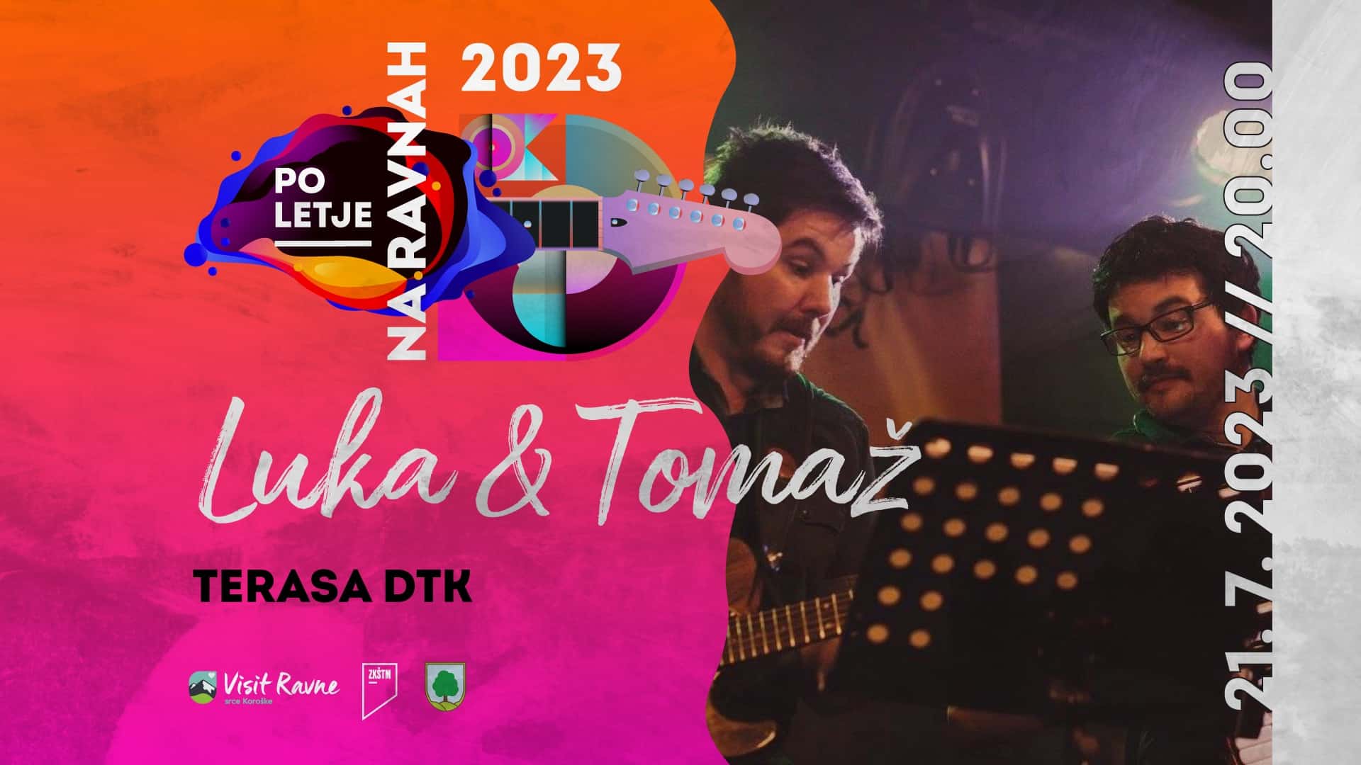 V petek, 21. julija 2023, ob 20. uri prihajata na teraso DTK-ja Luka in Tomaž, ki bosta igrala na harmoniko in kitaro.