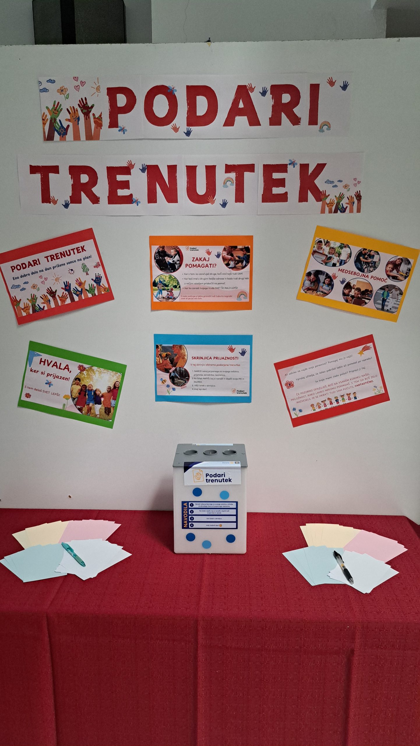 Na vseh koroških osnovnih šolah ter OŠ s prilagojenim programom in v sodelovanju s prijateljskimi Rotary klubi tudi 23 drugih šolah širom Slovenije pa 1. decembra 2025 pričenjajo s 3. krogom projekta Podari trenutek, ko bodo otroci znova zapisovali na listke, kako so pomagali drugim in bili prijazni, pri tem pa jih bomo spodbujali rotarijci in njihovi učitelji.