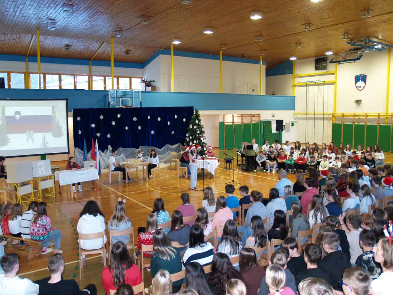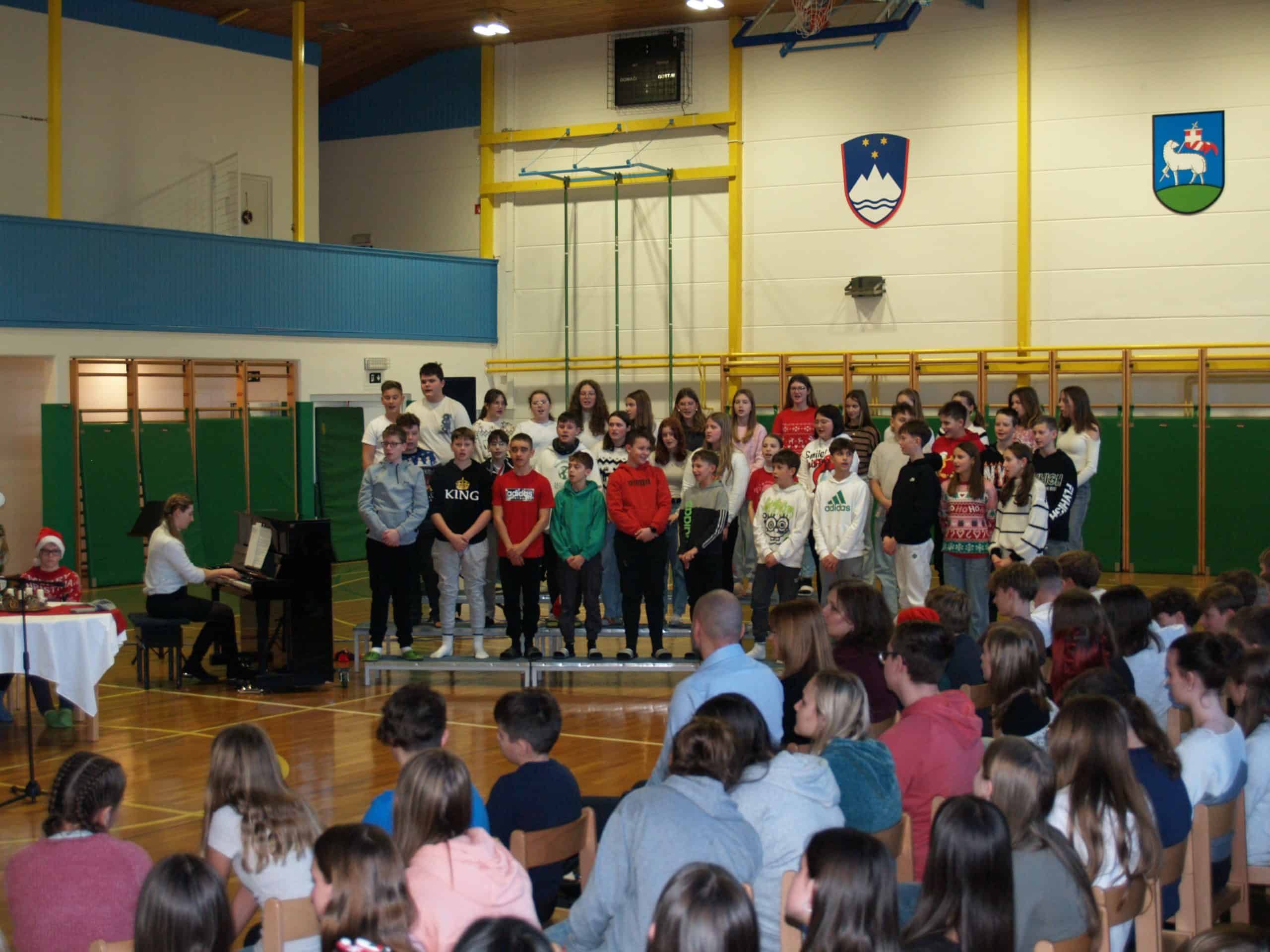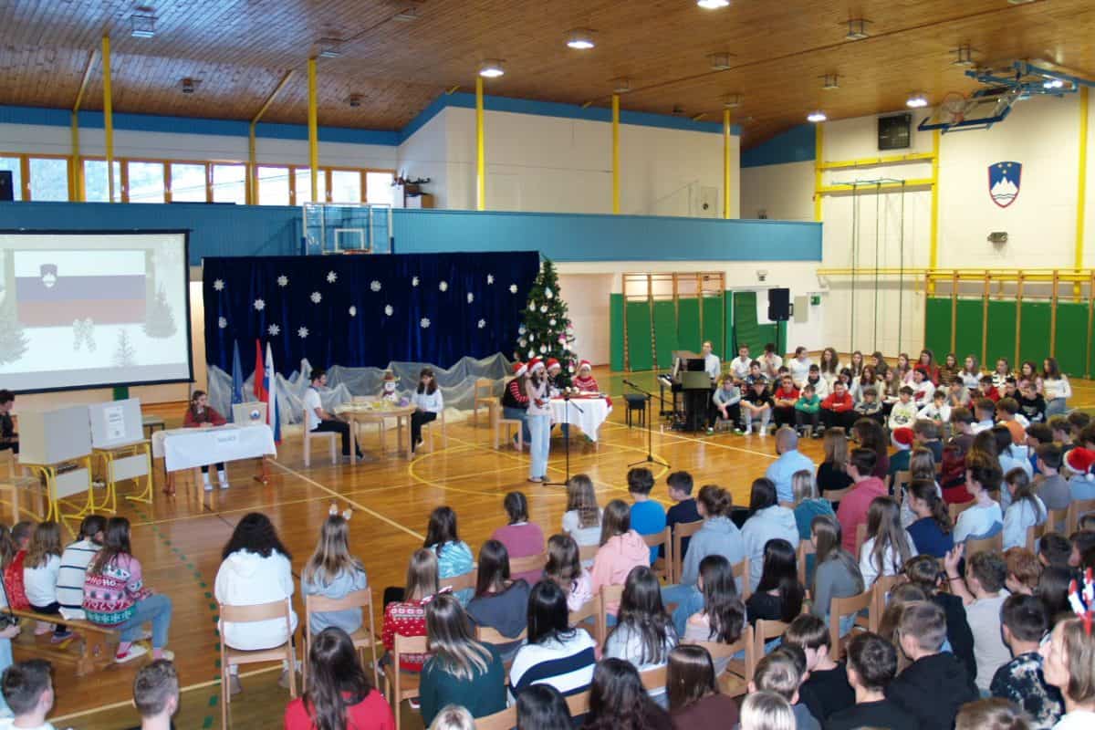 Kulturni program so popestrili z deklamacijami o pripadnosti slovenskemu narodu, dobrih in marljivih Slovencih, o najlepši domovini, ki je naš najlepši majhen svet. Slovenci smo ponosni na svoje korenine – vemo, kdo smo in od kod prihajamo. Glasbene točke so izvedli učenci s solističnimi nastopi, sodeloval je tudi šolski mladinski pevski zbor. Najmlajši so zaplesali in s svojimi ritmi priklicali Božička, ta jih je z veseljem obiskal. Najbolj so se ga seveda razveselili najmlajši. Vsem otrokom se je zahvalil za številna prejeta pisma, pohvalil učence za ves njihov trud in vztrajnost za šolsko delo ter jim zaželel zdravja, miru in osebne sreče v prihajajočem letu.