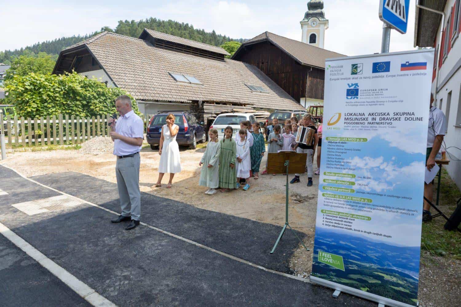 Predsednik Vaške skupnosti Pameče–Troblje Vili Kašnik se je županu zahvalil za izjemen posluh za potrebe občank in občanov, učencem in učenkam Podružnične osnovne šole Pameče–Troblje pa je podaril še odsevne trakove, ki jim bodo prav prišli predvsem na poteh v hladnejšem delu leta.