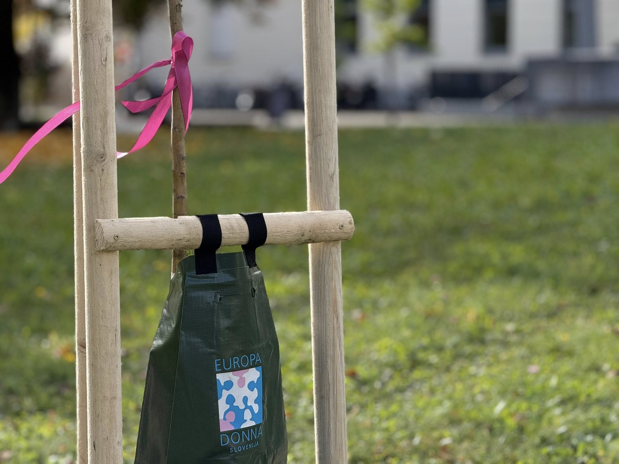 V parku pred gimnazijo so posadili “rožnato drevo”, s katero Mestna občina Slovenj Gradec postaja lokalni partner v osveščanju o raku dojk v lokalnem okolju.
