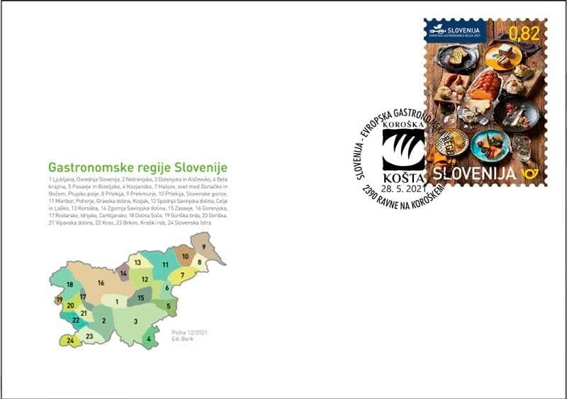 V petek, 28. maja 2021, bo Pošta Slovenije izdala priložnostni filatelistični sklop "Slovenija evropska gastronomska regija 2021", ki ga sestavlja priložnostna poštna znamka (oblikovanje Edi Berk, fotografija Tomo Jeseničnik), ovitek prvega dne (POŠTA 12/2021) in žig prvega dne (1101 Ljubljana, 28. 5. 2021).