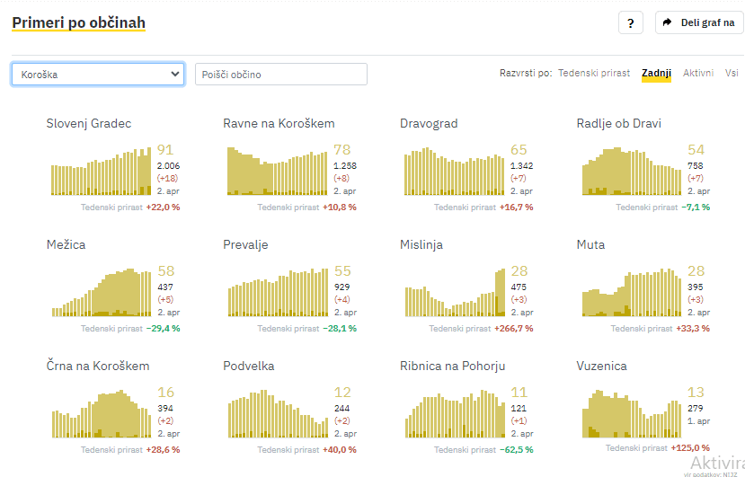 V zadnjih sedmih dneh so na Koroškem potrdili skupno 264 novih okužb na dan, povprečno 37.71. Kar pomeni, da Koroška glede na vladni semafor sproščanja ukrepov ne izpolnjuje pogojev za oranžno fazo, saj je sedemdnevno povprečje okužb višje od 34.