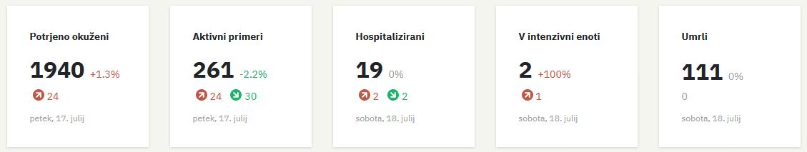 Do zdaj so v Sloveniji opravili skupno 120.056 testiranj in potrdili 1940 okužb. Umrlo je 111 bolnikov s covidom-19.