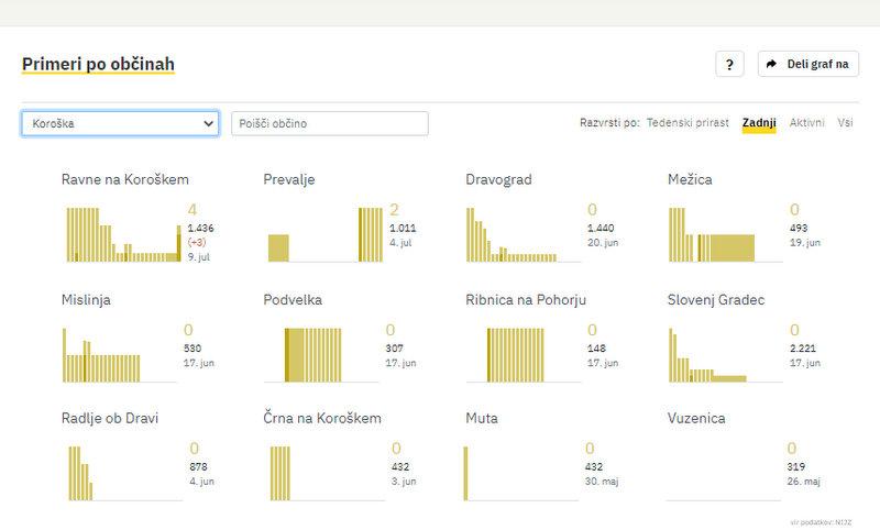 Po podatkih Sledilnika za covid-19 so na Koroškem včeraj potrdili 3 nove okužbe, v zadnjih sedmih dneh skupno 5. Na Ravnah včeraj tri, pred dnevi na Prevaljah 2. Sedemdnevno povprečje okužb v regiji tako znaša 0,71.