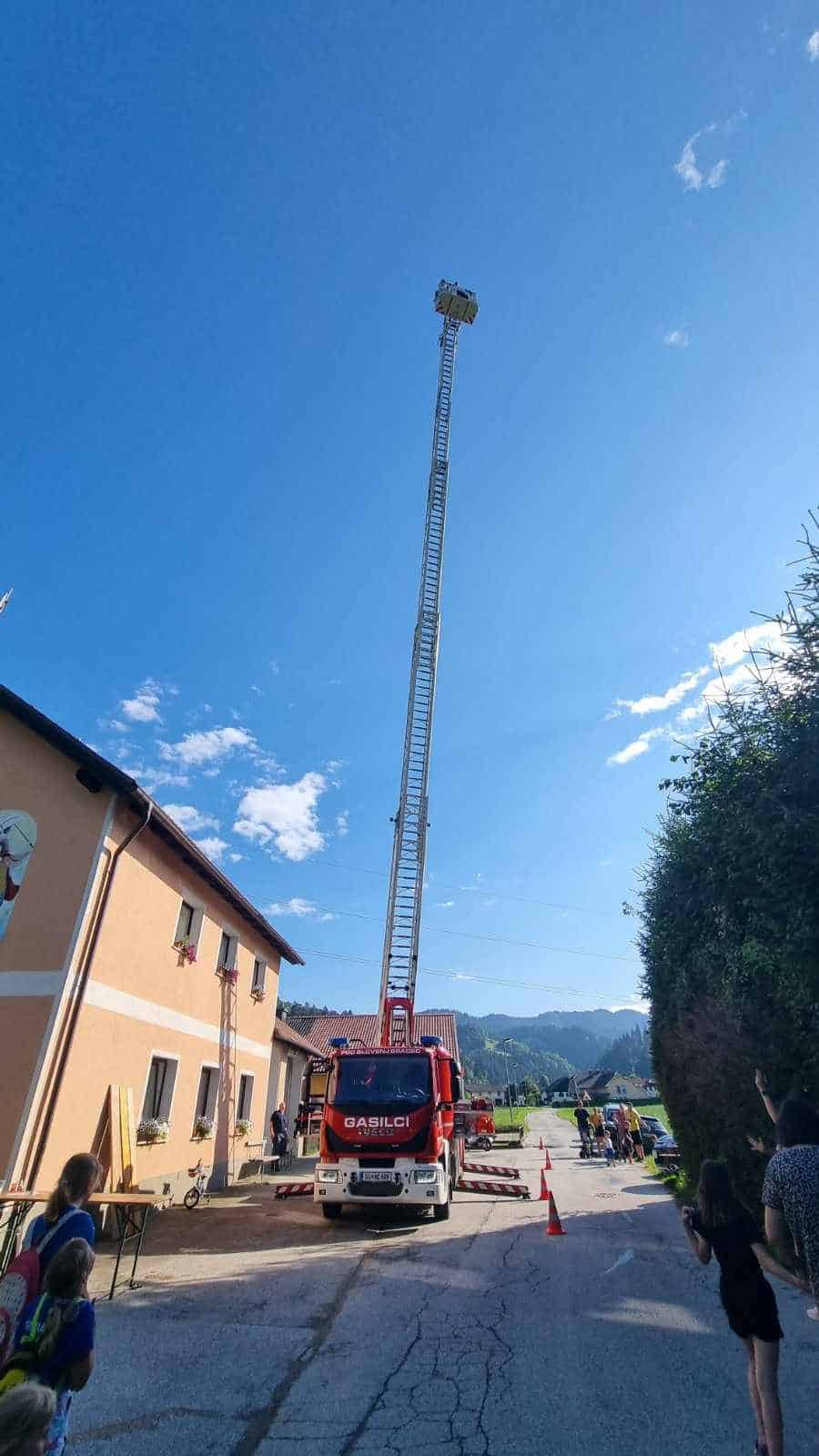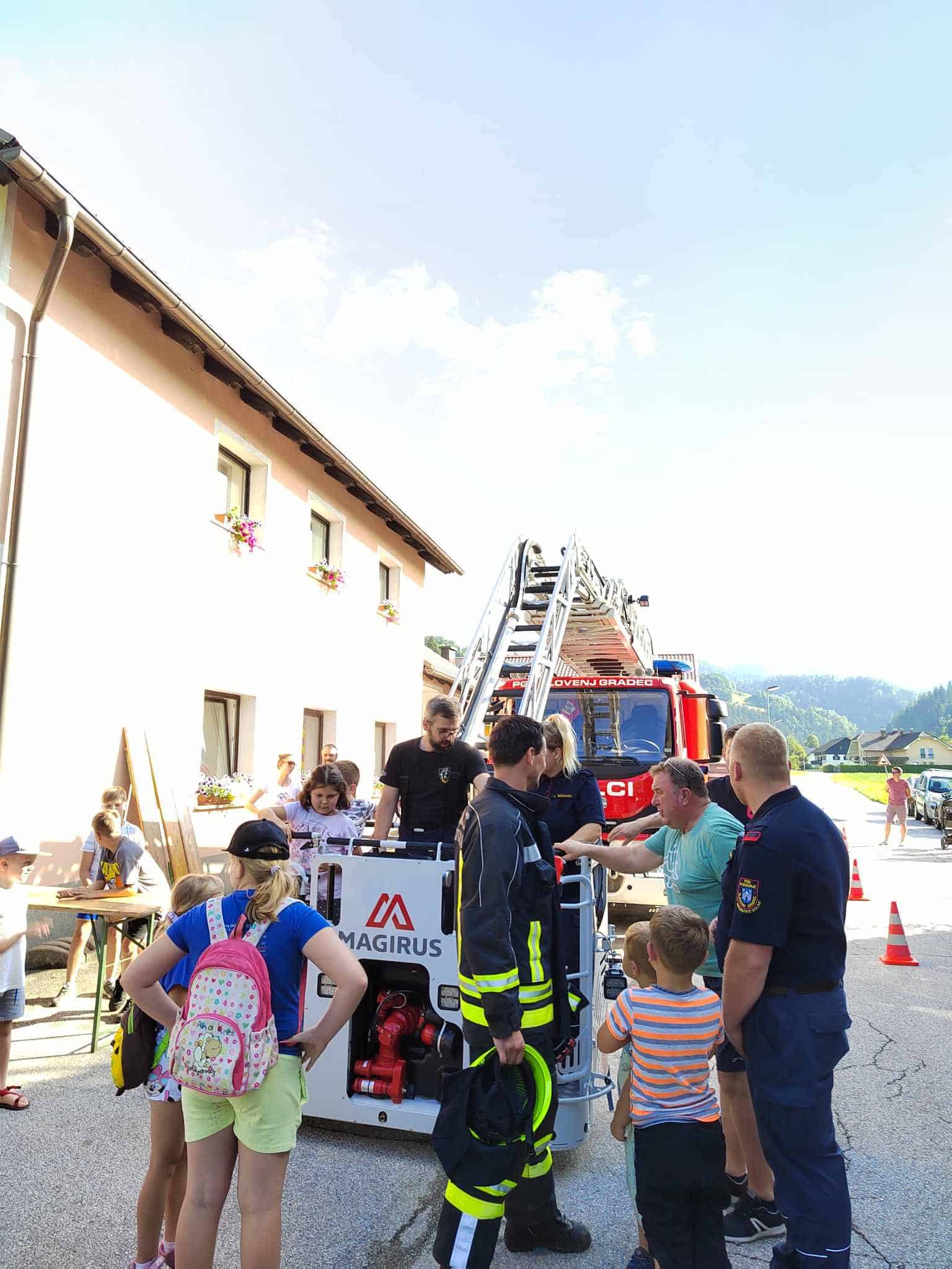 Gasilci iz Slovenj Gradca so jih z avto lestvijo dvignili kar 32m visoko, od koder je bil prelep razgled na okolico Podgorja. Otrokom so predstavili gasilsko cisterno in opremo.