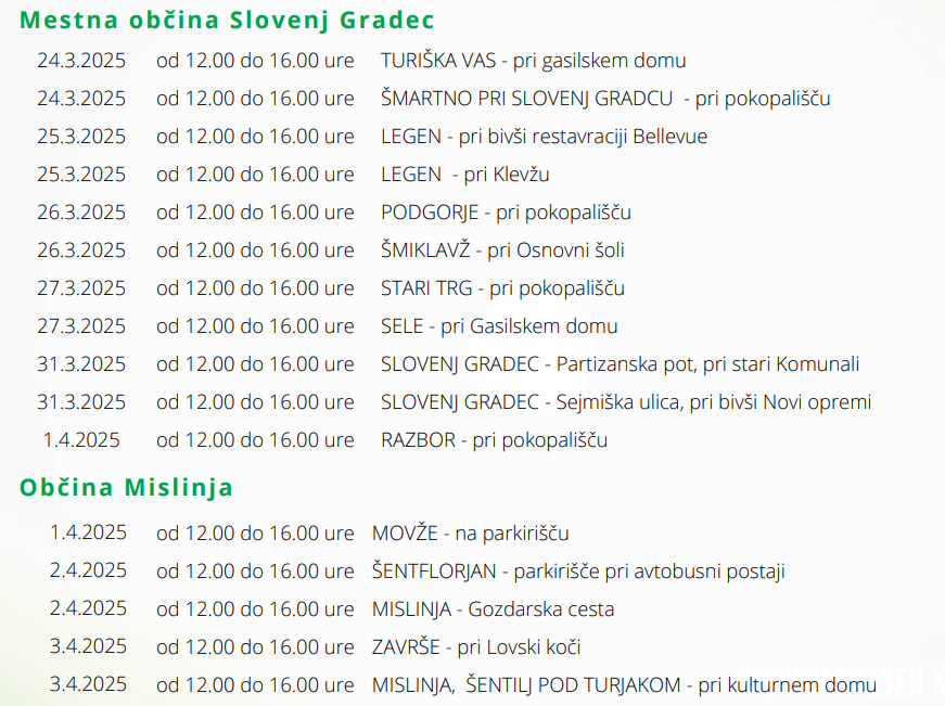 Družba Kocerod d.o.o. obvešča občanke in občane MO Slovenj Gradec ter Občine Mislinja, da bodo letos v marcu in aprilu organizirali spomladansko čistilno akcijo zbiranja kosovnih odpadkov.