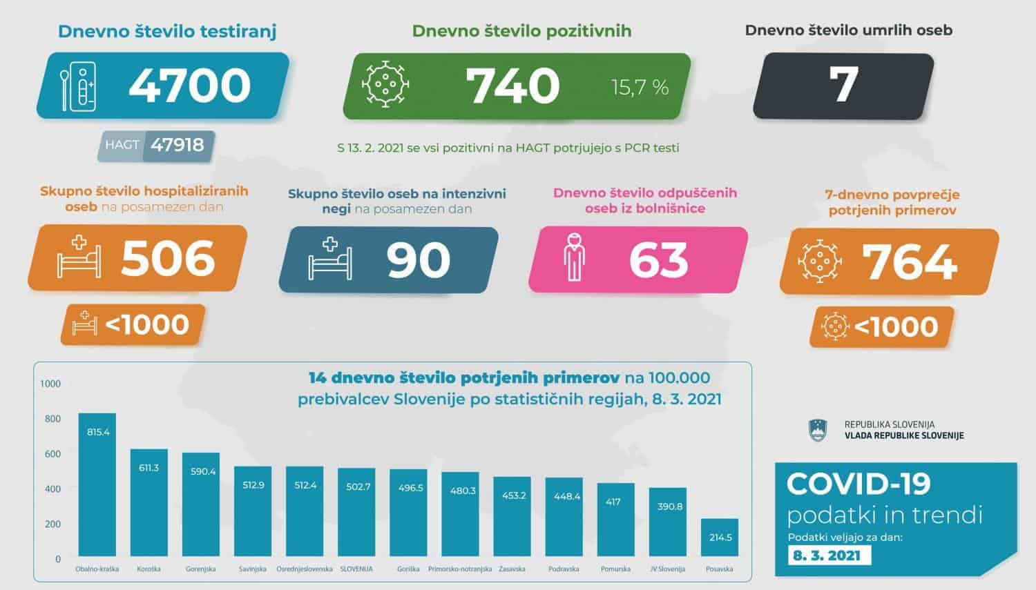 Trend obolelosti s koronavirusom na dan 8. 3. 2021 (00:00-24:00):