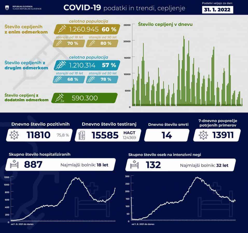 Med starejšimi od 18 let je s prvim odmerkom cepljenih 70 odstotkov prebivalstva, z vsemi odmerki pa 68 odstotkov. S prvim odmerkom je cepljenih 80 odstotkov starejših od 50 let, z vsemi pa 78 odstotkov. Poživitveni odmerek je po aktualnih podatkih prejelo 590.300 ljudi.