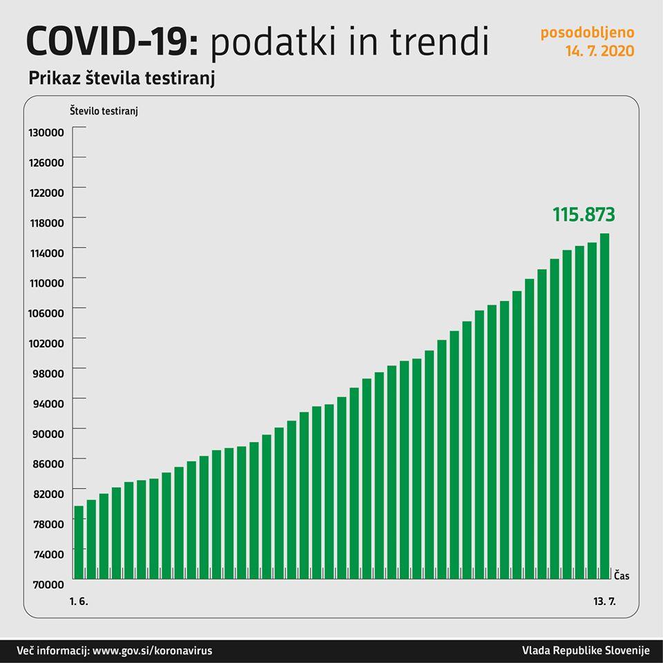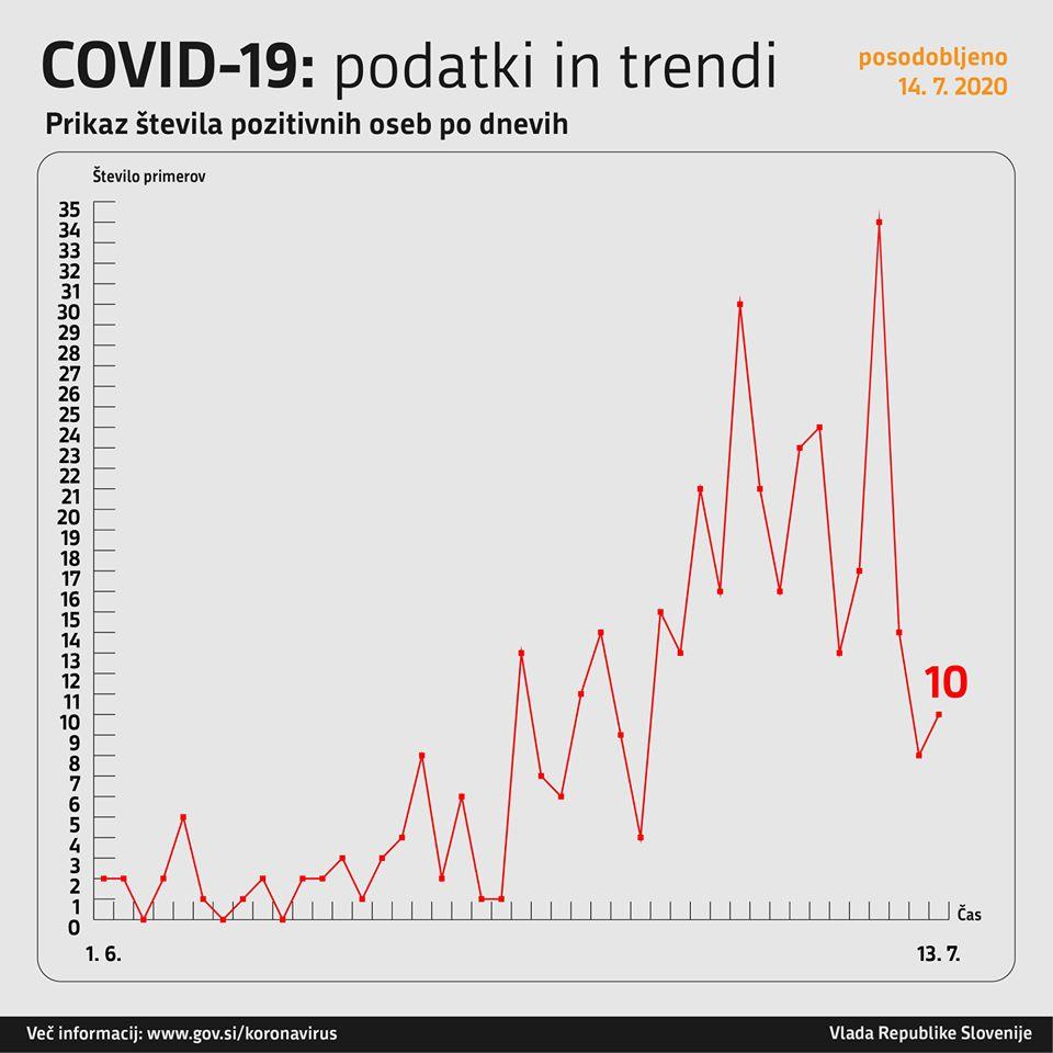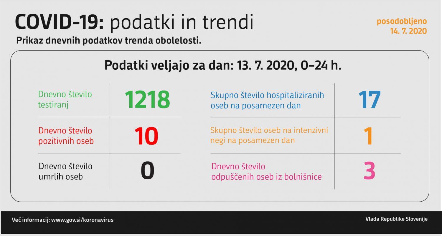 Trend obolelosti s koronavirusom v Sloveniji na dan 13. 7. 2020 (00:00–24:00):