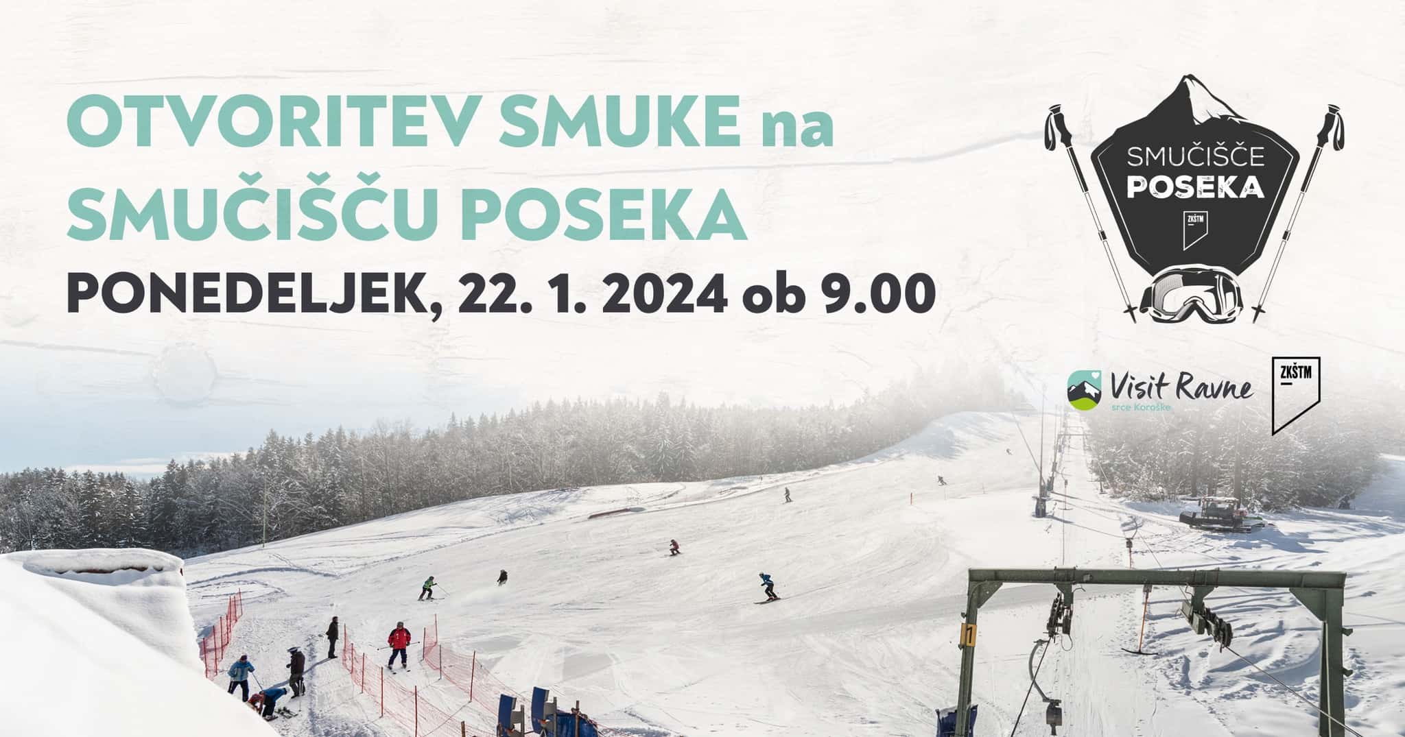 Zavod za kulturo, šport, turizem in mladinske dejavnosti, ZKŠTM Ravne, z največjim veseljem sporoča, da bo v ponedeljek, 22. januarja 2024, z obratovanjem začelo Smučišča Poseka.