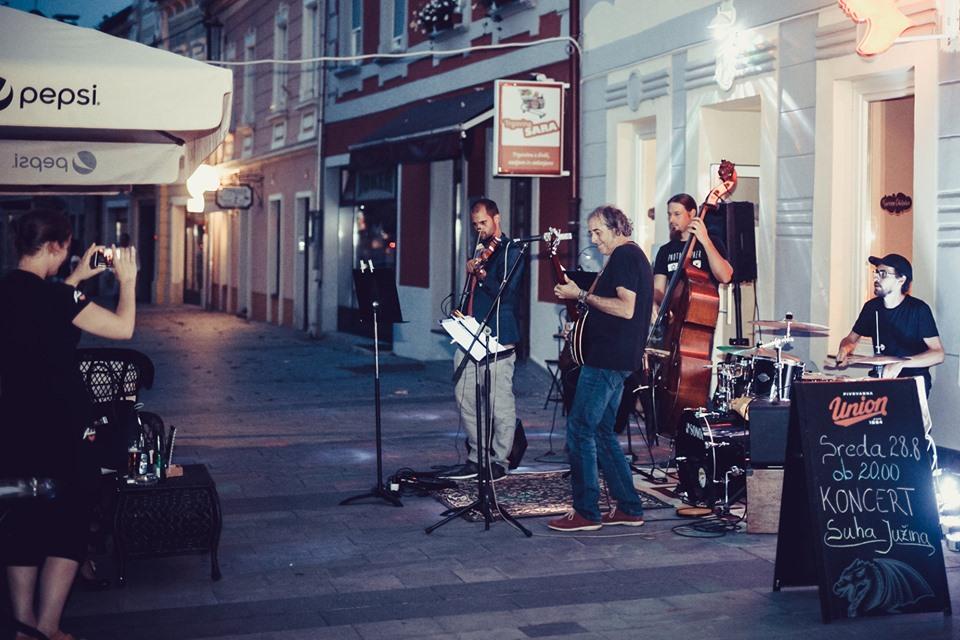 V sredo, 28. avgusta pa je bila v znamenju dobre glasbe Kavarna Čokoladica, kjer so pripravili druženje ob glasbi, pijači in ostalih dobrotah. V prijetnem ambientu so nas prijazne natakarice postregle z domačimi slanimi dobrotami, stalno ponudbo sladic, coctailov, hladnega piva in ostalih napitkov, ki so nam pogreli telo in srce. Za dušo pa je bilo poskrbljeno, ko so na oder stopili člani zasedbe Suha Južina (»Musique Boutique«). Ob butičnih priredbah, ki zvenijo na svojstven, suho južinski način, so nas peljali skozi kratko glasbeno zgodovino, od 19. do 21. stoletja. Beethoven, Brahms, Ellington, Presley, Privšek, Stepenwolf, Pet Shop Boys ter Deep Purple in drugi, so zazveneli v plesnih ritmih, ki so jih člani banda pričarali na violini, kontrabasu, banju, bobnu, kitari in s prelestnim glasom.