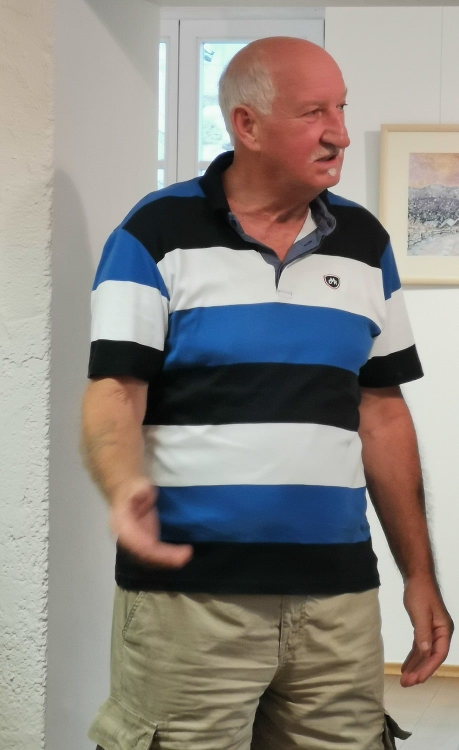 Na razstavi lahko občudujemo likovna dela, ki so večinoma realistična in kjer prevladuje njegova priljubljena tematika, to je krajina, nekaj pa je trudi ekspresionističnih, abstraktnih likovnih del, ki kažejo, da sta mu tudi ekspresionizem in abstrakcija zelo blizu. Odprtje razstave je z glasbo popestrila vrhunska glasbenica Danaja Grebenc. Razstava bo odprta v delovnem času Infopisarne do konca meseca septembra.