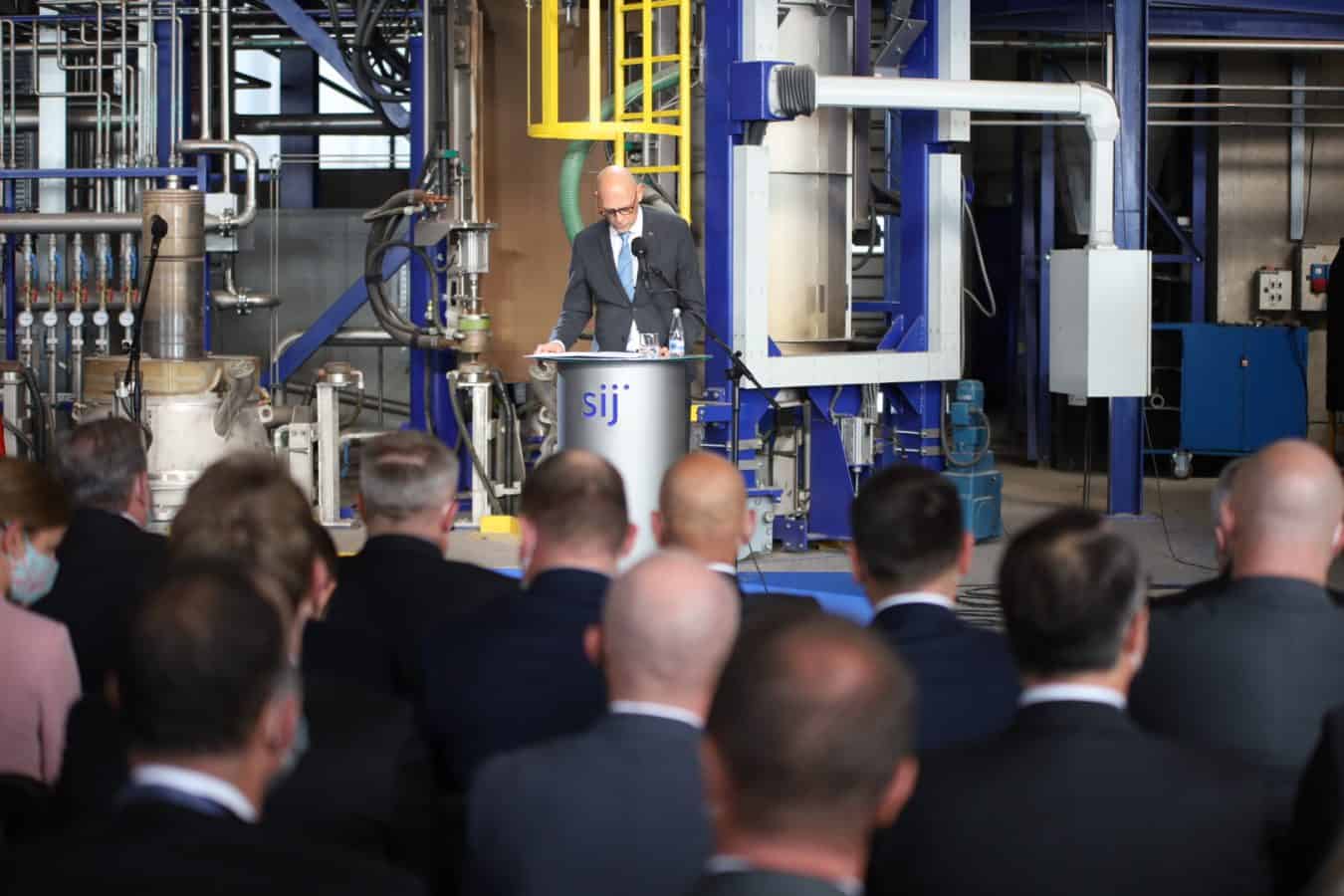 Minister za gospodarstvo in tehnologijo Zdravko Počivalšek pa je v nagovoru dejal: »Dejstvo je, da razvoja ni mogoče ustaviti. Lahko se le odločimo - bomo stopili na ta vlak razvoja ali bomo capljali za njim? To velja tako za podjetja kot za države. Danes je razvoj, bolj kot kadarkoli povezan z zelenim prehodom in digitalizacijo, ki je v energetsko intenzivnih industrijah toliko večji izziv, a obenem prinaša tudi več prednosti. Kot pravi pregovor, se najboljše jeklo kali v najbolj vročem ognju. Da ta ogenj ne ugasne, se je potrebno neprestano posodabljati in preobražati, kar je tudi ključni namen nove Slovenske industrijske strategije 2021-2030, ki jo je Vlada RS sprejela junija letos. Skupaj v dialogu z gospodarstvom smo ugotovili, da potrebujemo industrijo, ki bo zelena, ustvarjalna in pametna in veseli me, da se bomo tudi na poti do podnebno nevtralne Evrope lahko zanesli na Skupino SIJ.«