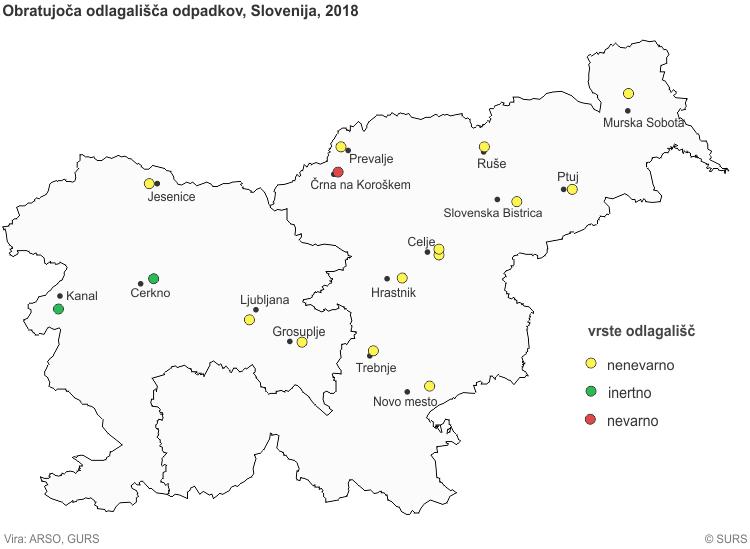V 2018 je bilo v Sloveniji 16 obratujočih odlagališč odpadkov, od tega 13 za nenevarne odpadke, dve za inertne odpadke in eno za nevarne odpadke. Enajst odlagališč odpadkov (večina) je bilo v vzhodni Sloveniji, pet pa v zahodni Sloveniji.