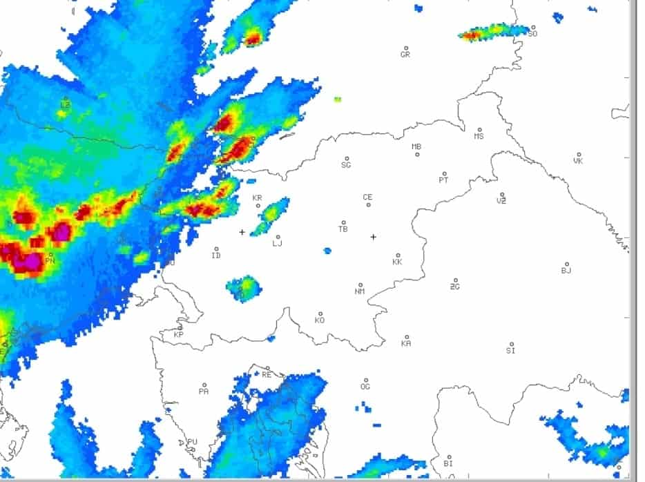 Po besedah meteorologa Branka Gregorčiča iz Arsa nas danes čaka podobno vremensko dogajanje kot v preteklem tednu. Nadaljevale se bodo nevihte, kar velja predvsem za območje Gorenjske, Koroške, dela Štajerske in Prekmurja, je poudaril v ponedeljek v izjavi za medije.