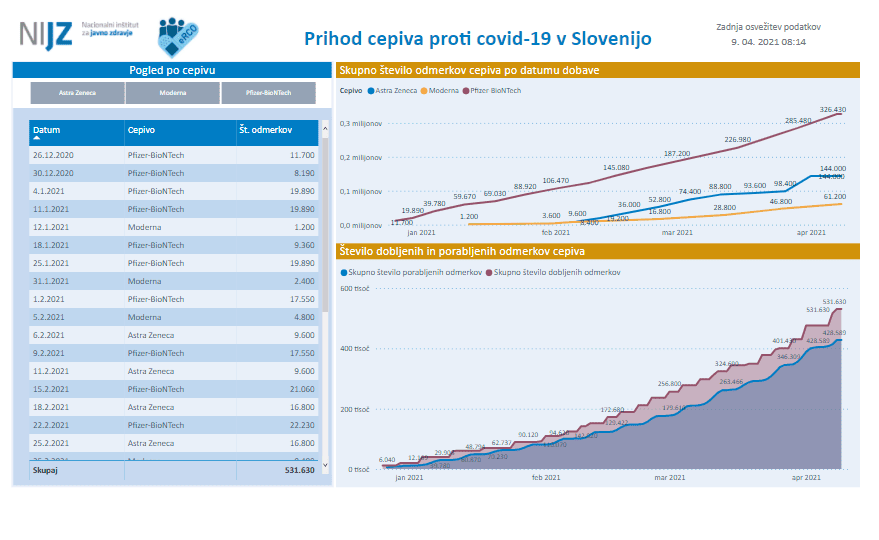Na NIJZ spremljajo izvajanje cepljenja proti covidu-19 na podlagi podatkov o opravljenih cepljenjih, ki jih izvajalci posredujejo v Elektronski register cepljenih oseb in neželenih učinkov po cepljenju.