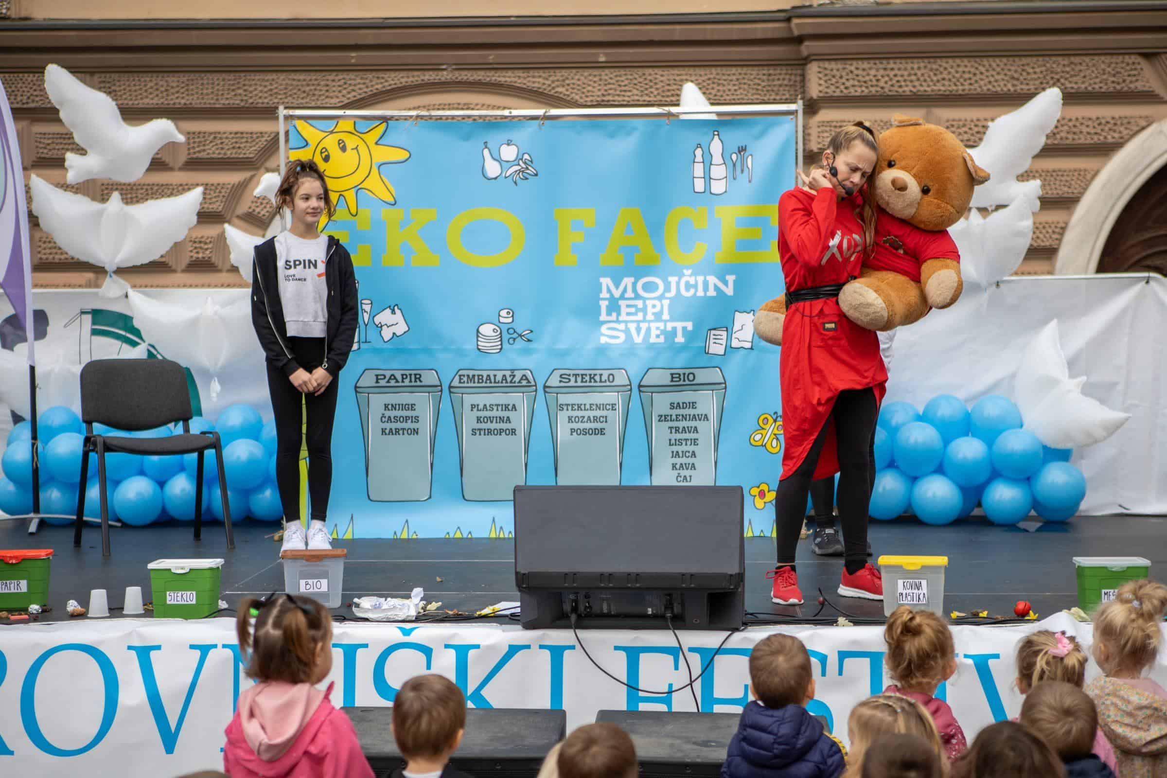 Pester spremljevalni program z zanimivimi zabavno-ustvarjalnimi delavnicami je vodila Anja Vajde. Otroke je na začetku zabavala plesna šola SPIN z zanimivim poučnim programom. Vsi otroci so med nastopom posatli "Eko face"