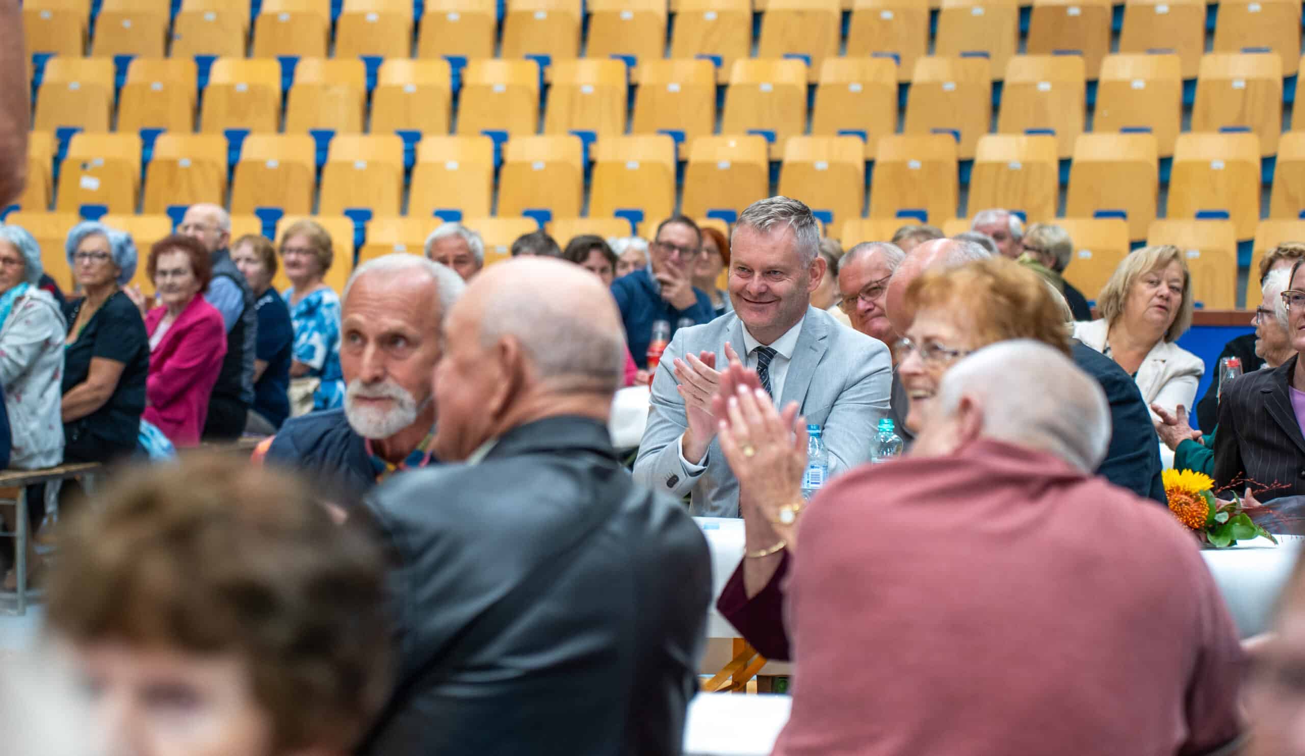 Danes, ob 10. uri, je v Športni dvorani Vinka Cajnka Slovenj Gradec potekalo zelo prijetno druženje upokojencev in invalidov Mestne občine Slovenj Gradec.