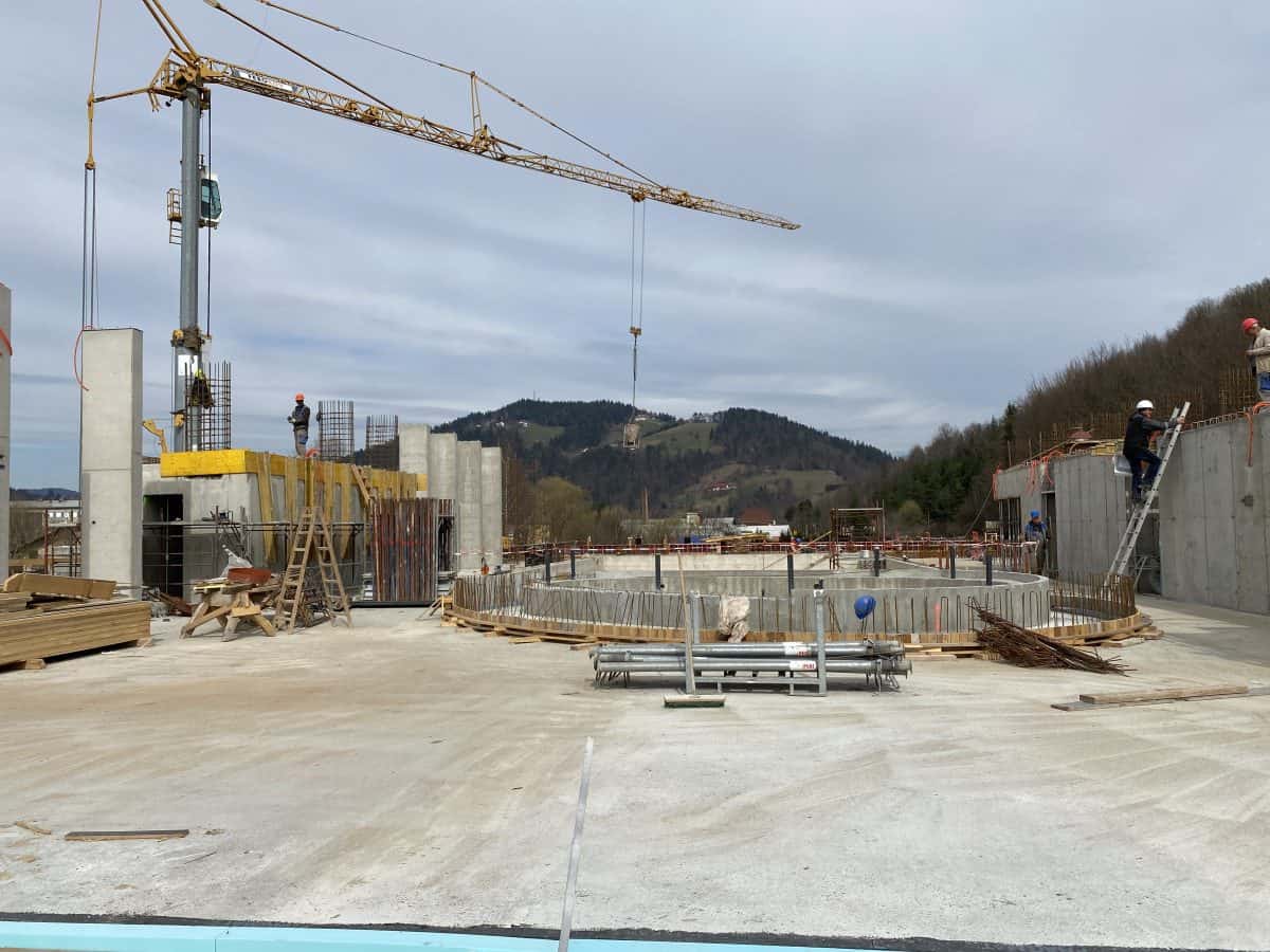 Gradnja bazenskega kompleksa s parkom urbanih športov poteka nemoteno in skladno z načrtom. Z delom naj bi zaključili spomladi prihodnje leto, junija pa načrtujejo uradno otvoritev. Kot je pojasnil župan bo park urbanih športov grajen sočasno z ureditvijo zunanje okolice, sodelujejo pa tudi z vodarji, saj urejajo tudi brežino reke Mislinje na tem območju, gradili bodo tudi nov most. Bazenski kompleks z zunanjim in notranjim bazenom bo, kot je že znano omogočal še obisk savne, fitnesa, otroške igralnice in bara.