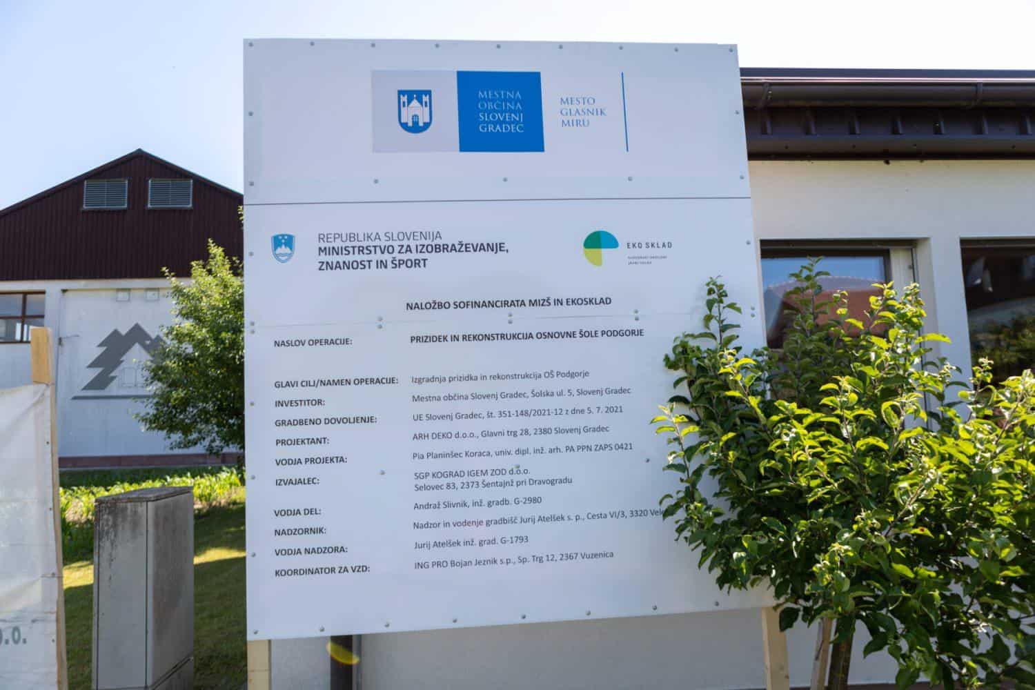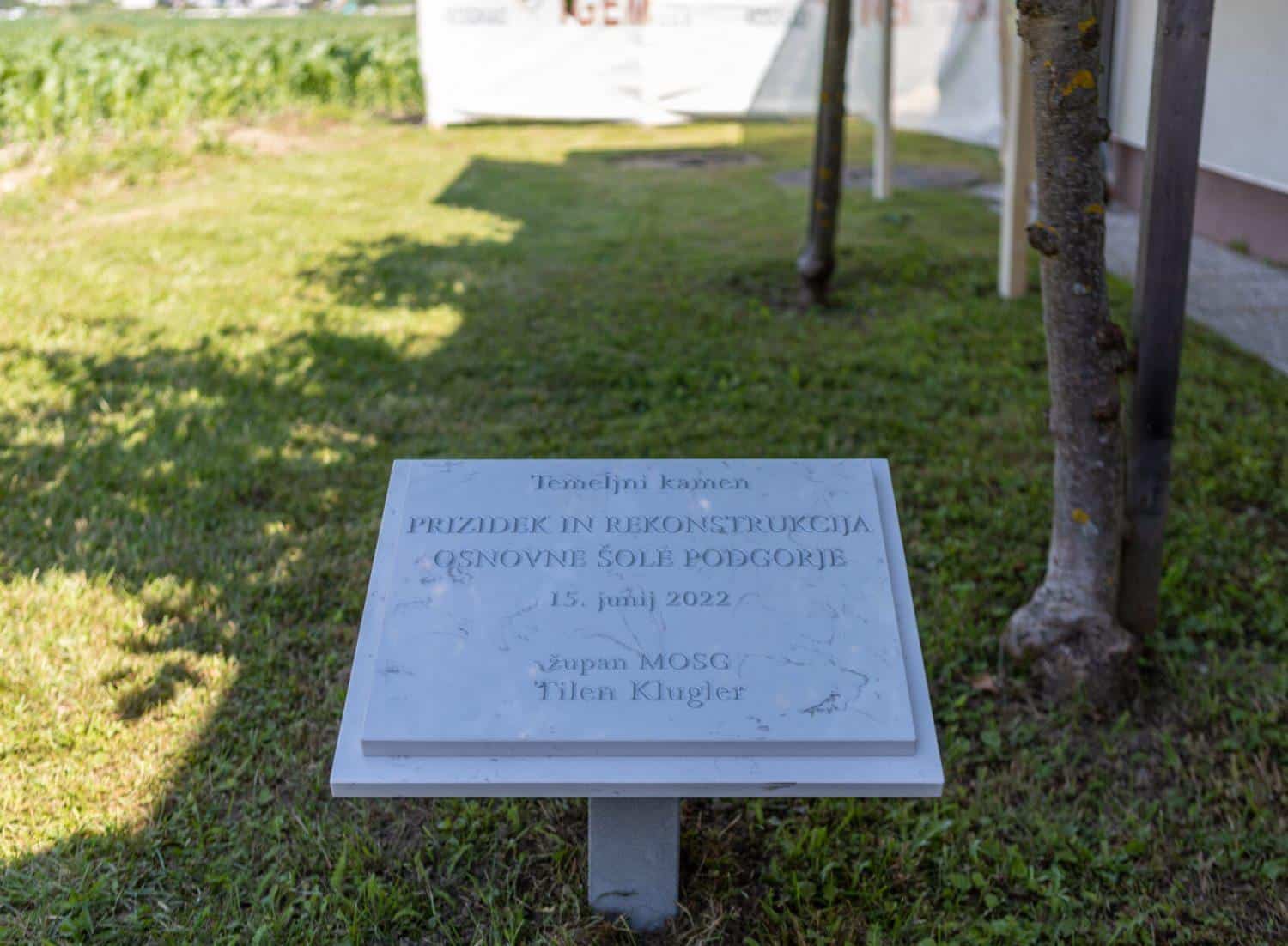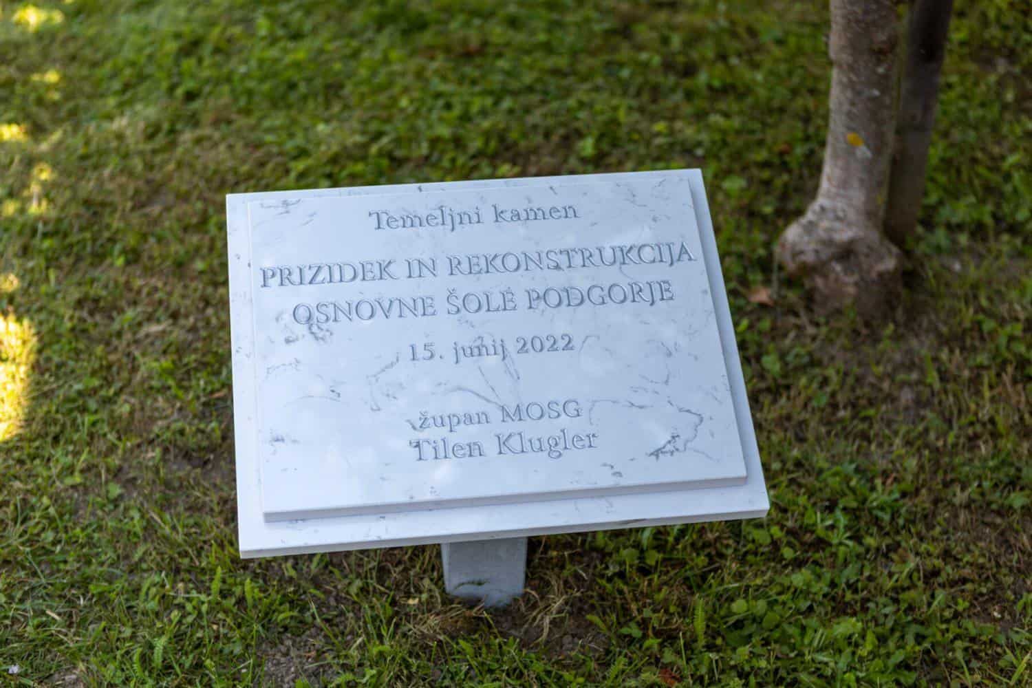 Župan Mestne občine Slovenj Gradec Tilen Klugler je 19. maja 2022 podpisal gradbeno pogodbo za "Prizidek in rekonstrukcijo Osnovne šole Podgorje" z izbranim izvajalcem SGP KOGRAD IGEM ZOD, d. o. o., danes pa so v Podgorju odkrili še temeljni kamen za uradni začetek del. Ob tej priložnosti so pripravili tudi kratko slovesnost.