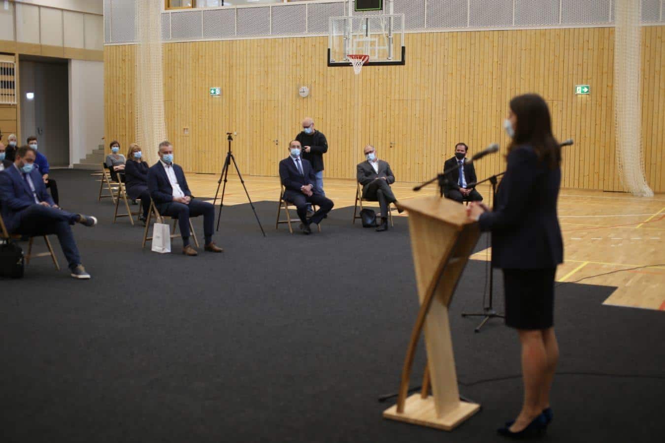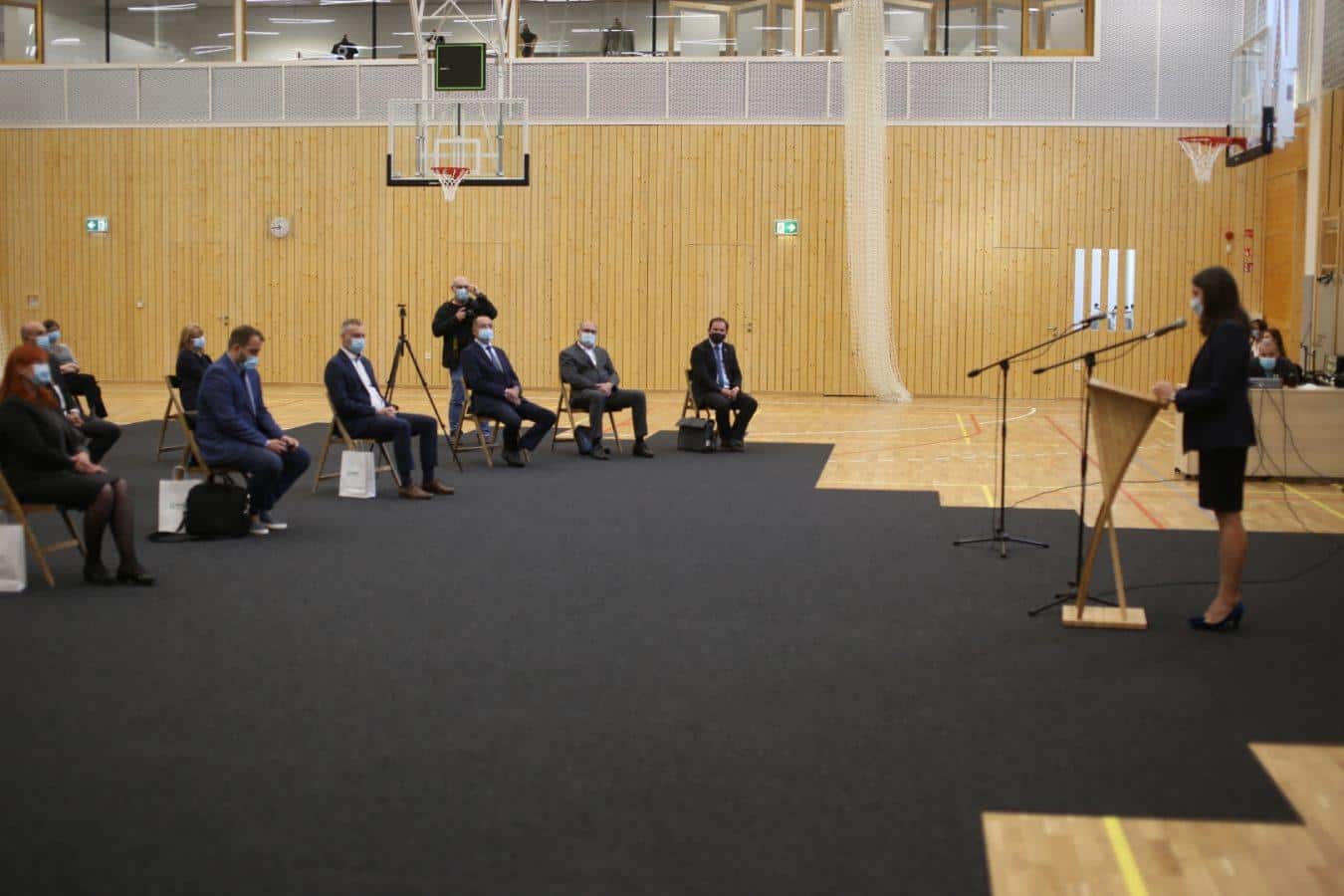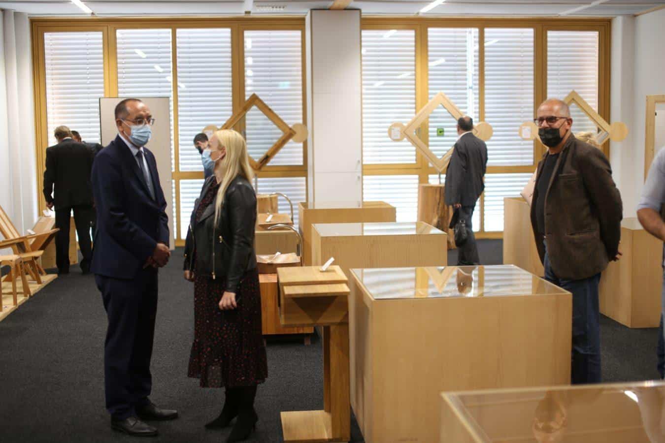 Na današnjem odprtju razstave so prisotne nagovorili Bernard Kresnik, ravnatelj Srednje šole Slovenj Gradec in Muta, Tilen Klugler, župan Mestne občine Slovenj Gradec, prof. dr. Franc Pohleven, organizator razstave Čar lesa, Danilo Anton Ranc, generalni direktor, Direktorat za lesarstvo, Ministrstvo za gospodarski razvoj in tehnologijo, dr. Tomaž Kostanjevec, direktor agencije SPIRIT, Andrej Čuš, državni sekretar Ministrstva za gospodarski razvoj in tehnologijo, dr. Simona Kustec, ministrica Ministrstva za izobraževanje, znanost in šport.