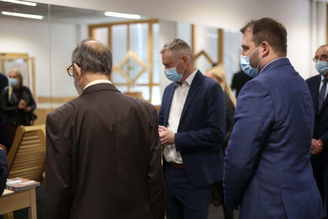 Na današnjem odprtju razstave so prisotne nagovorili Bernard Kresnik, ravnatelj Srednje šole Slovenj Gradec in Muta, Tilen Klugler, župan Mestne občine Slovenj Gradec, prof. dr. Franc Pohleven, organizator razstave Čar lesa, Danilo Anton Ranc, generalni direktor, Direktorat za lesarstvo, Ministrstvo za gospodarski razvoj in tehnologijo, dr. Tomaž Kostanjevec, direktor agencije SPIRIT, Andrej Čuš, državni sekretar Ministrstva za gospodarski razvoj in tehnologijo, dr. Simona Kustec, ministrica Ministrstva za izobraževanje, znanost in šport.