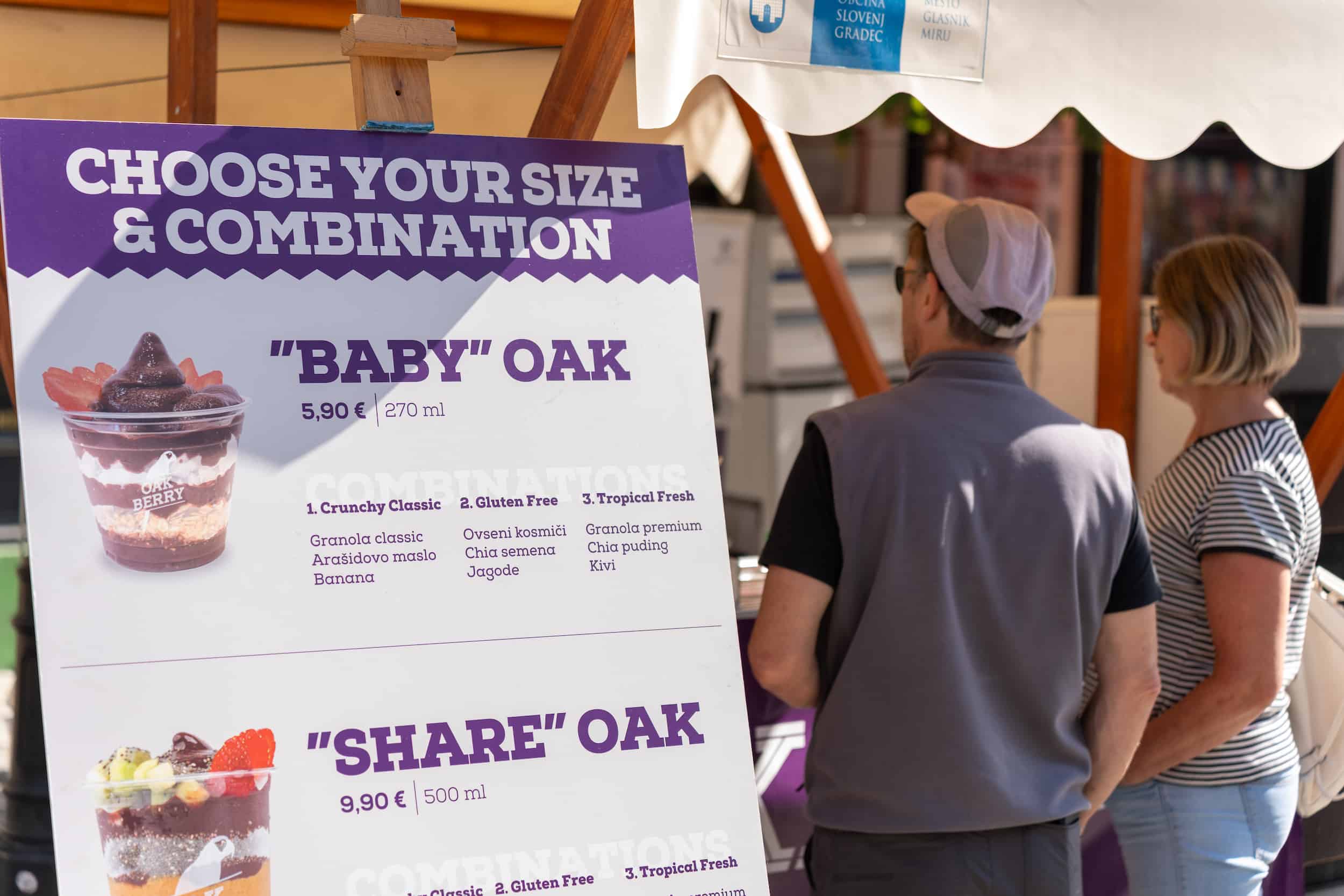 S čudovito mešanico kulinaričnih dobrot vas bodo tokrat razvajali Argentino Steakhouse Lounge CaffeClub, Atelier Karim, Birdie Foodielab, Brina, Dežela okusov, Food Point Slovenia, Kitajski Vrt, Namaste – indijska restavracija, Oakberry, Pišek bar, PUNKT, bistro in kavarna, Rozaslon, Stari pisker – gostilna in pivnica, Stories by Lea, TORO paellas, Twister ice cream rolls.