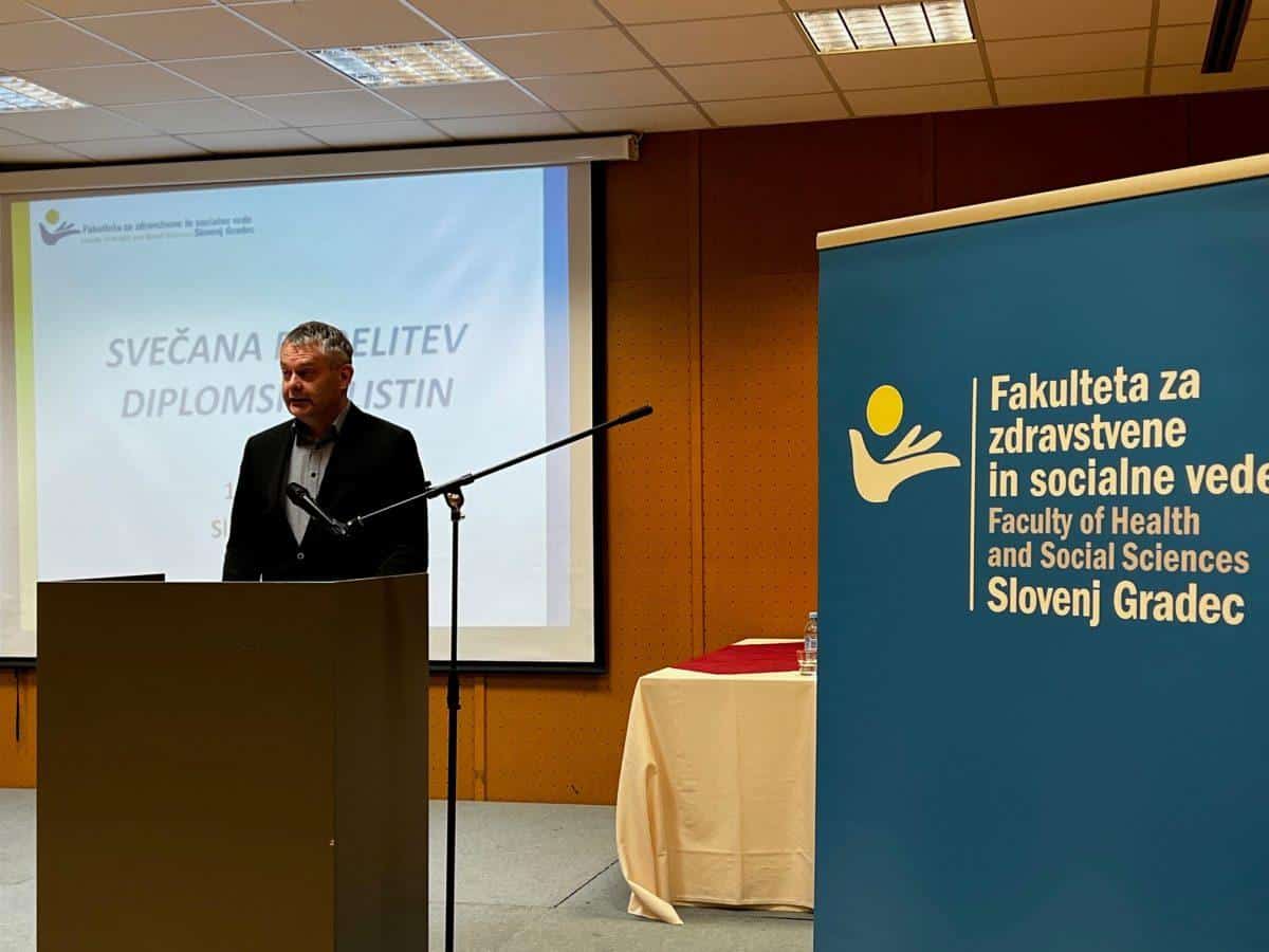 V imenu ustanoviteljice, Mestne občine Slovenj Gradec, jim je ob tem iskreno čestital in zaželel veliko prihodnjih uspehov, fakulteti pa se je zahvalil za strokovno izvedbo programov, kar je še eni generaciji omogočilo uspešen zaključek študija, kljub izzivom, s katerimi nas sooča epidemija. Diplomantkam in diplomantom, ki jih bo epidemiološka situacija spremljala tudi v profesionalnih, službenih okoljih še nekaj časa, je zaželel, da ostanejo zdravi, vsem diplomantkam in diplomantom, svojcem in prijateljem, pa je zaželel tudi lepe in mirne božične praznike in predvsem lepše in prijaznejše novo leto.