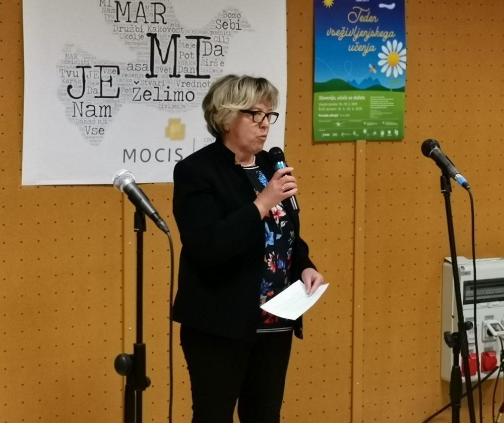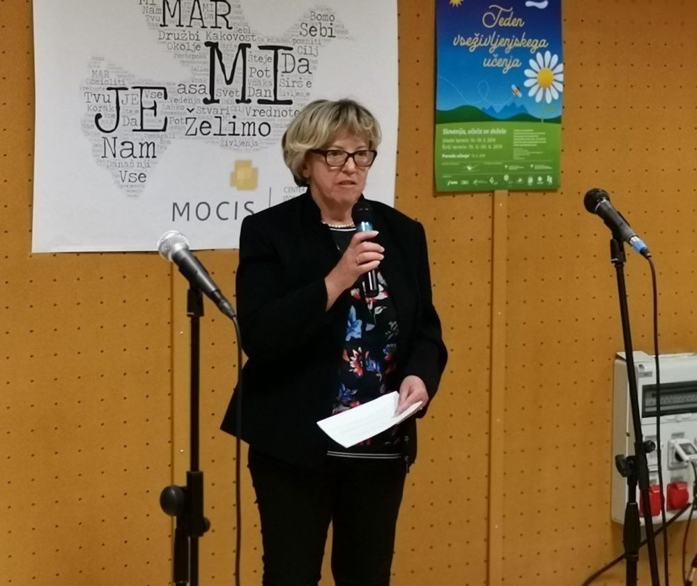 V današnjem uvodnem delu dogajanja, ki ga je povezovala Darja Vrhovnik, so prisotne nagovorile in pozdravile Sonja Lakovšek, direktorica MOCIS-a, Ana Pakelnik, predstavnica Andragoškega centra Slovenije in Martina Šisernik, podžupanja MO Slovenj Gradec.