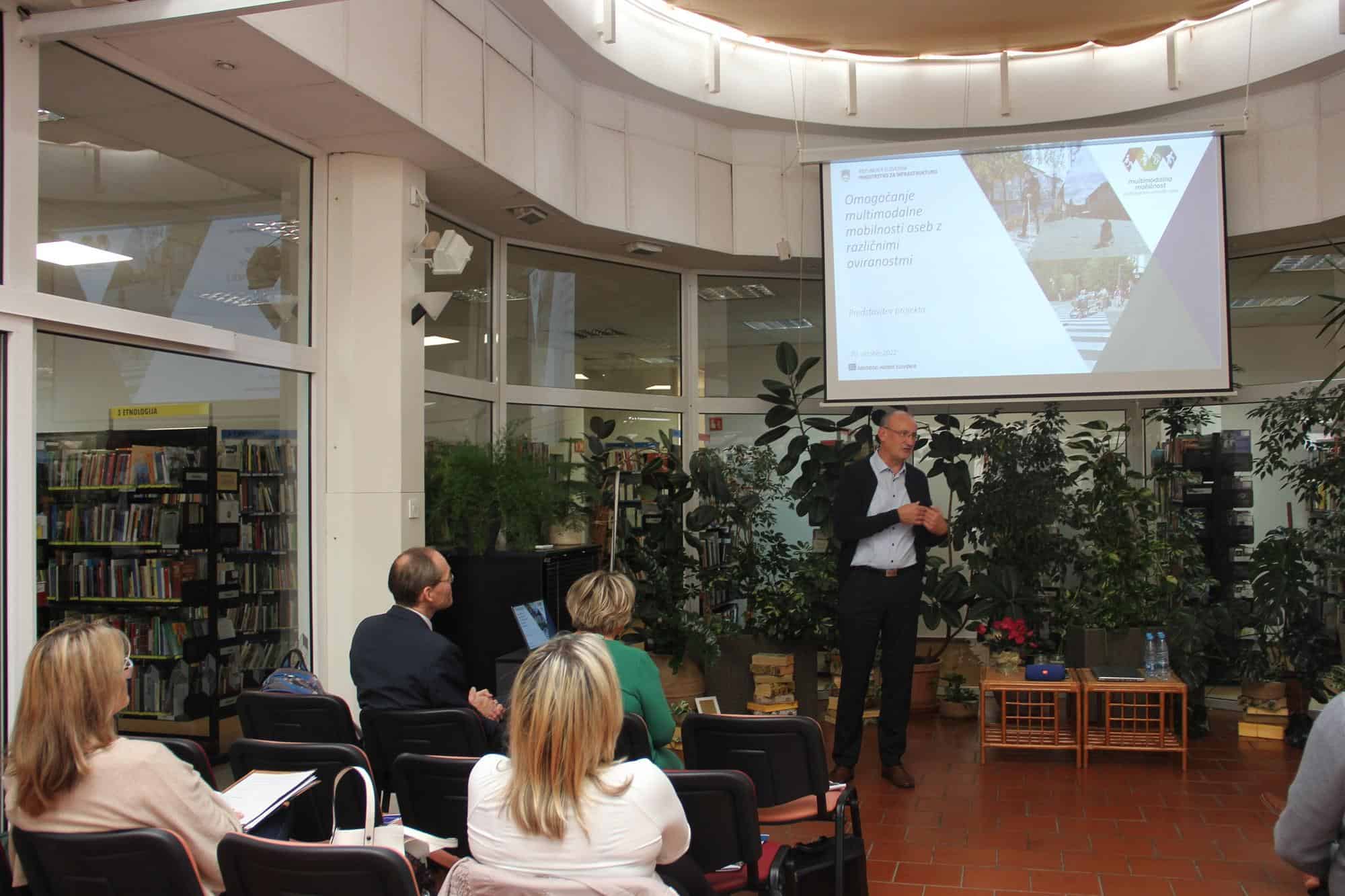Potek terenskega zajema podatkov o dostopnosti urbane infrastrukture, ki ga izvajajo v sodelovanju z osebami z različnimi oviranostmi, je predstavil strokovni sodelavec GI Jani Demšar. Ob tem jeizpostavil še nov sistem in enotni standard digitalnega pregledovalnika podatkov o dostopnosti za posamezne ciljne skupine projekta: osebe z okvarami vida, osebe z okvarami sluha, gibalno ovirane ter starejše.