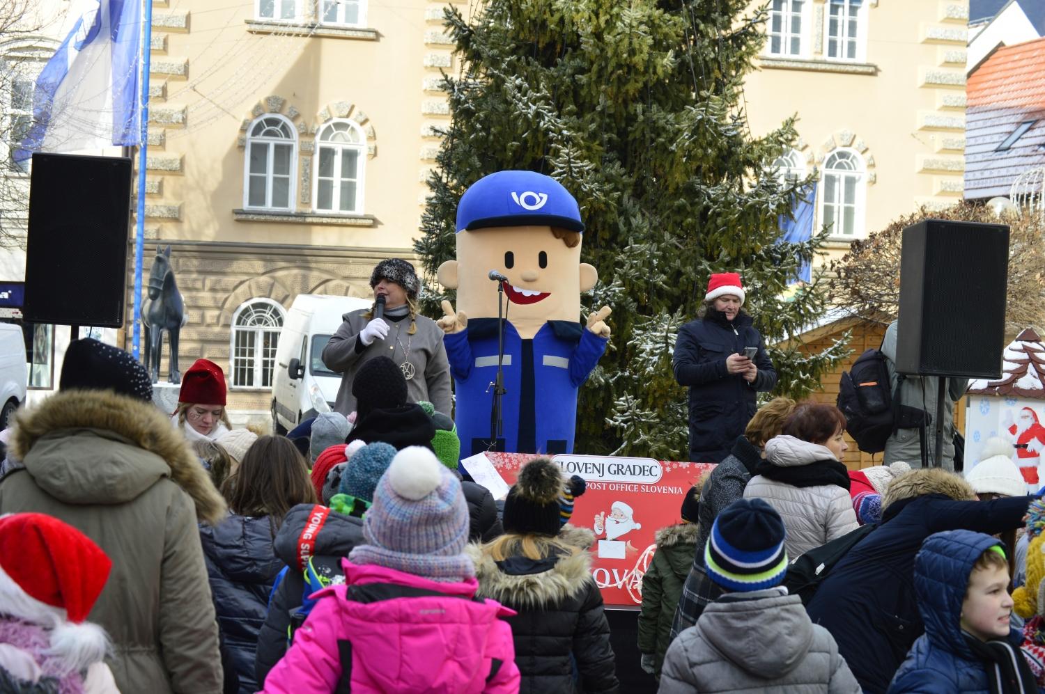 V okviru veselega decembra v Slovenj Gradcu je bilo danes v mestnem jedru še posebej veselo, razigrano in glasno. Seveda pa so bili vsi otroci tudi zelo pridni. Saj kot pravi poštar Pavli, Božiček vse vidi in vse sliši. Zato so bili danes, ko so poštarju Pavliju oddali pisma za Božička, še posebej pridni.