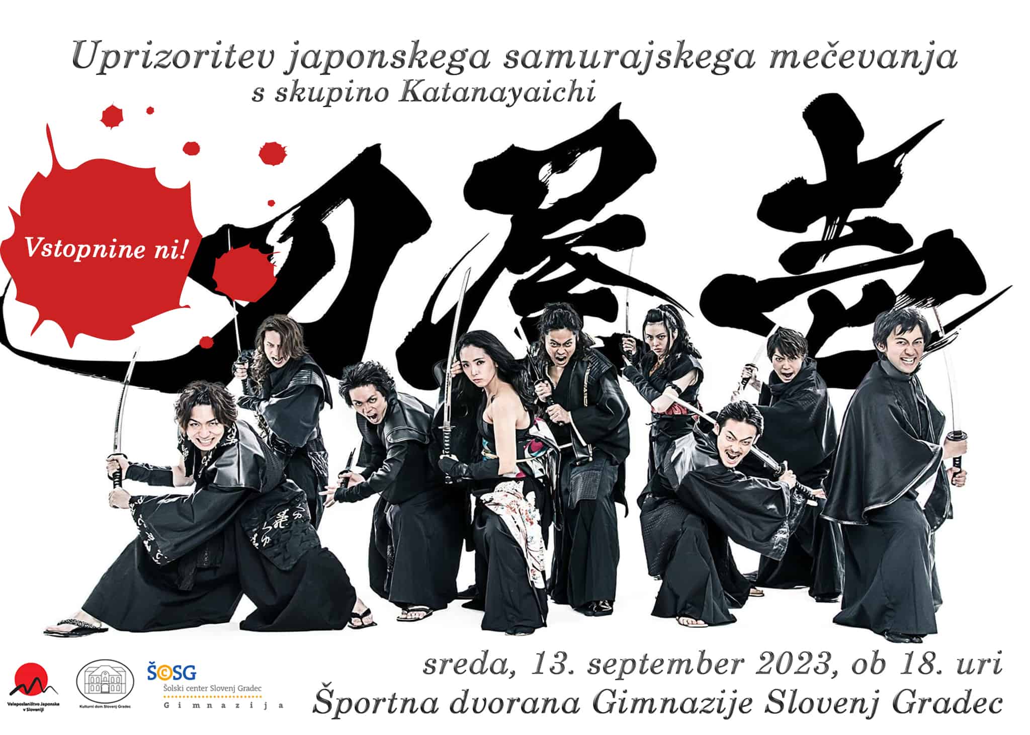 Pridružite se plemenitim samurajskim bojevnikom jutri, 13. septembra 2023, ob 18. uri v Športni dvorani Gimnazije Slovenj Gradec, vstop na predstavo je brezplačen.