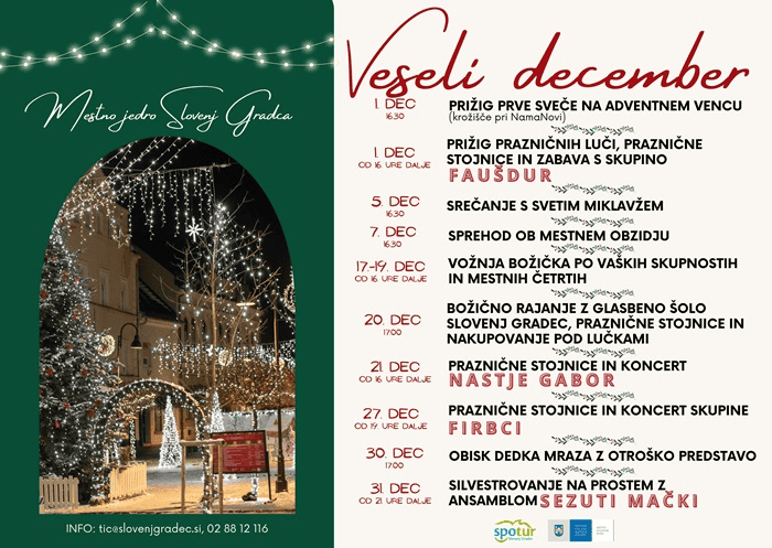 Prižig prve svečke na adventnem vencu je uvod v praznični december, ki bo v mestu in njegovi okolici ponudil obilico kulturnih in zabavnih prireditev.