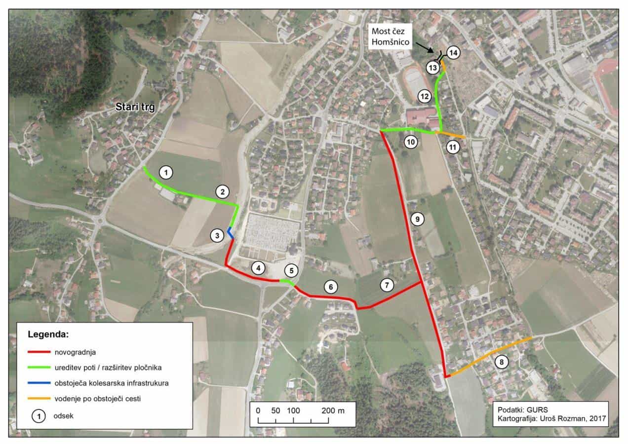 Sklop 1 zajema tudi ureditev ločenih peš površin na odseku številka 4, 5, 8 (del), 9, 10 (del) in 11 (del), namestitev kolesarskega števca pred Prvo osnovno šolo ter gradnjo brvi preko vodotoka Homšnica (odsek 14). Na odseku 9 (Gozdna pot) je predvidena rekonstrukcija ceste.