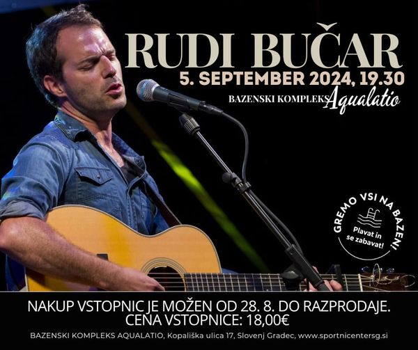 Nocoj, v četrtek, 5. septembra 2024, ob 19.30 uri se v Bazenskem kompleksu Aqualatio obeta zares poseben večer. V goste prihaja namreč primorski glasbenik Rudi Bučar.