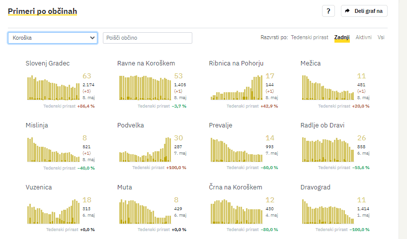 Slovenj Gradec 3, Ravne na Koroškem 1, Ribnica na Pohorju 1, Mežica 1, Mislinja 1.